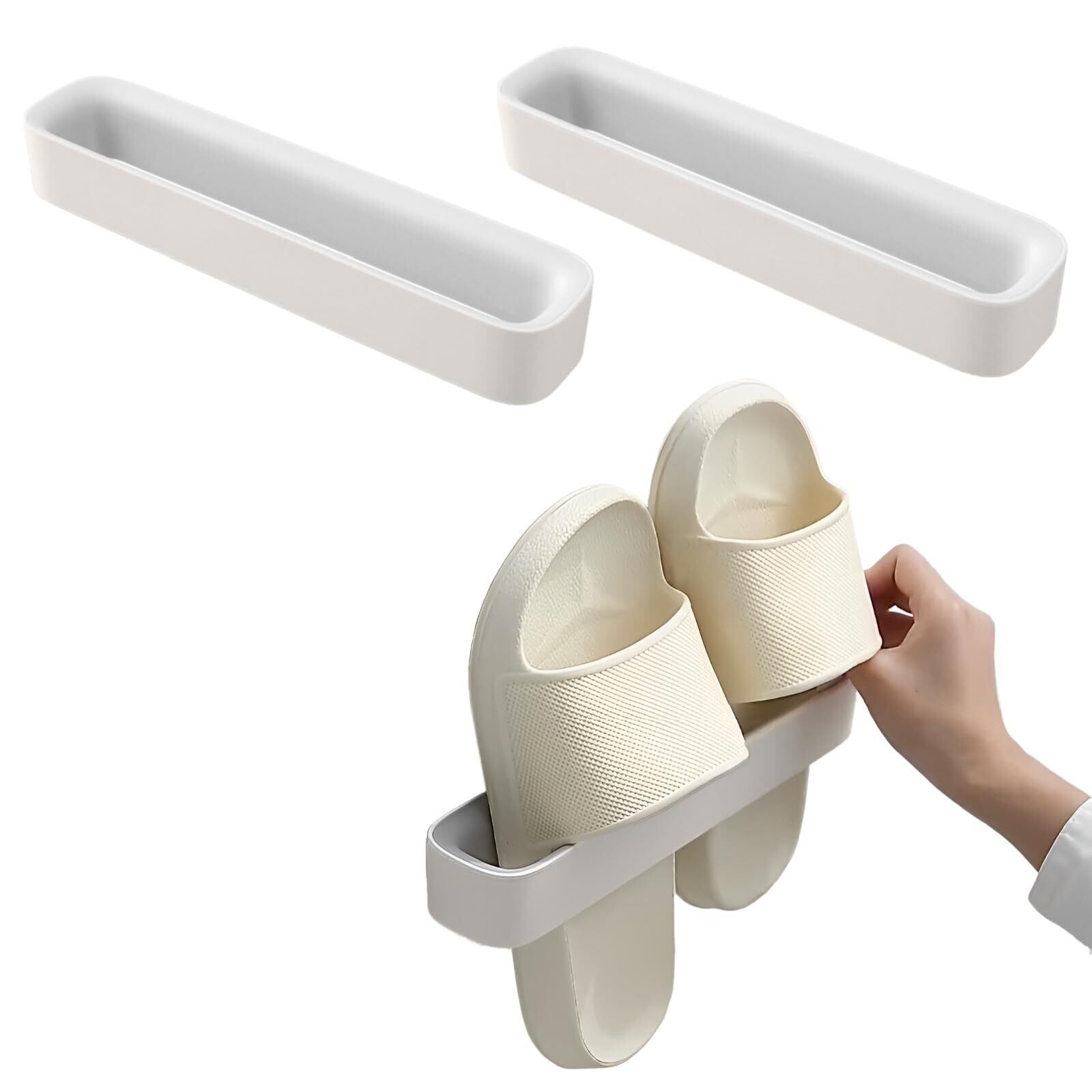 シンプルな壁掛けスリッパ、サンダルホルダー2個セット。シンプルなのでさりげなくセットする事も可能です。様々な場所にマッチするおしゃれなホワイトベージュカラー。