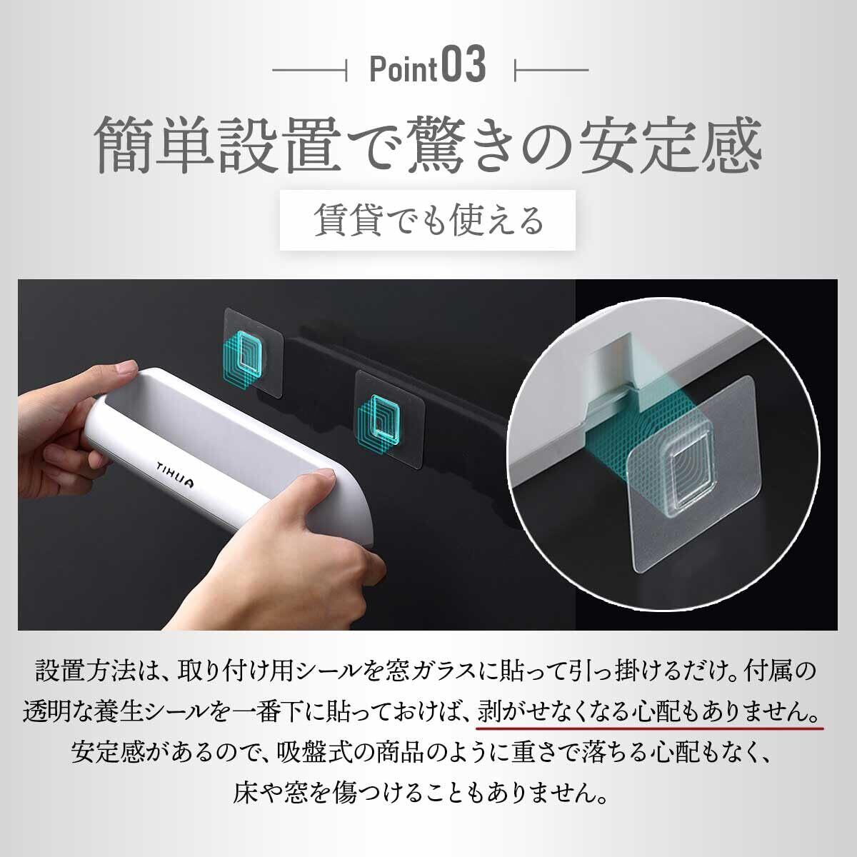 シール貼付で簡単設置、安定感抜群で賃貸住宅でも安心使用