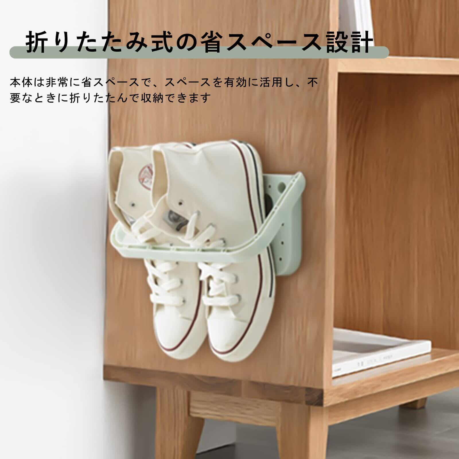 シューズラック スリッパラック スリッパホルダー 壁マウント 壁掛け 省スパースラック 下駄箱 玄関収納用 浴室用 折りたたみ 2個セット ブルー グレー