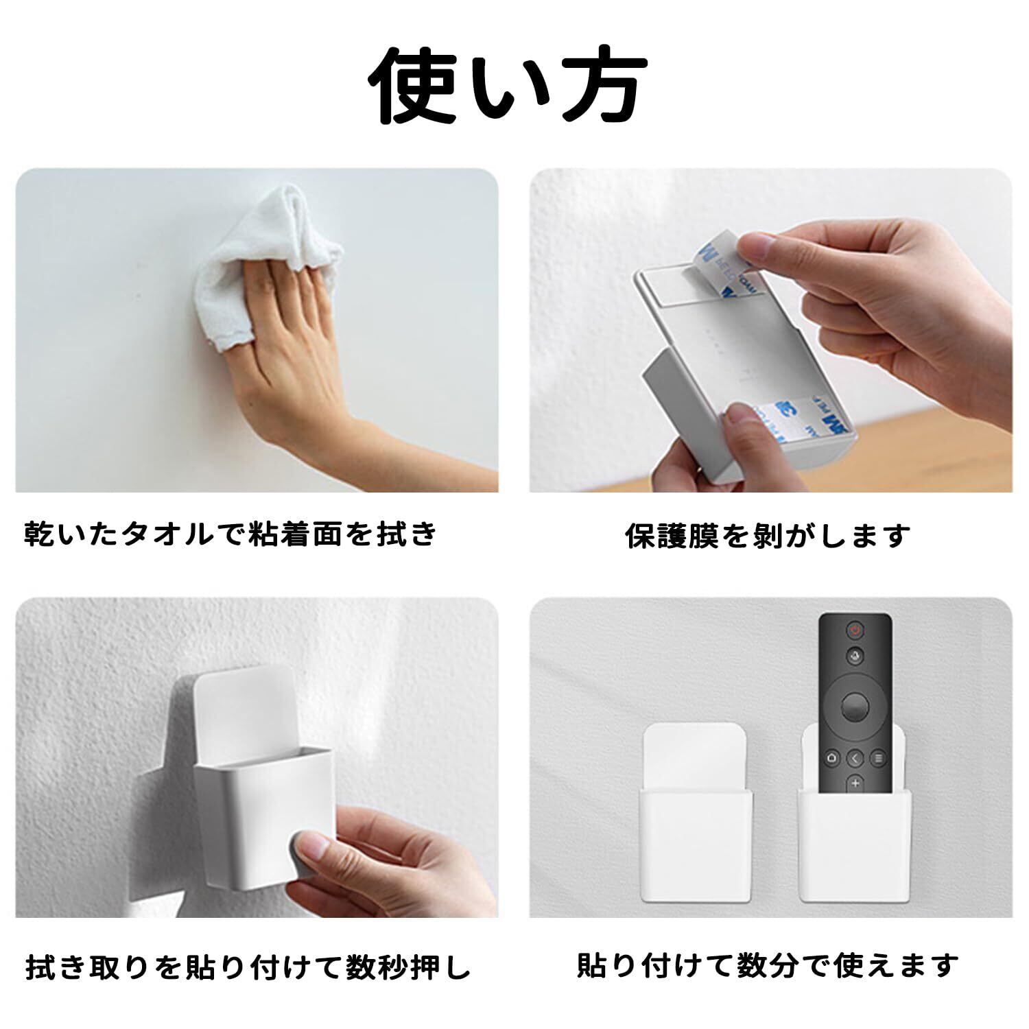 リモコンホルダー(2個入り) リモコンラック リモコン 収納 リモコンラック 壁掛け 収納 小物入れ リモコン整理 多機能収納 小物入れ 粘着テープ式 便利 紛失防止 淡いグレー