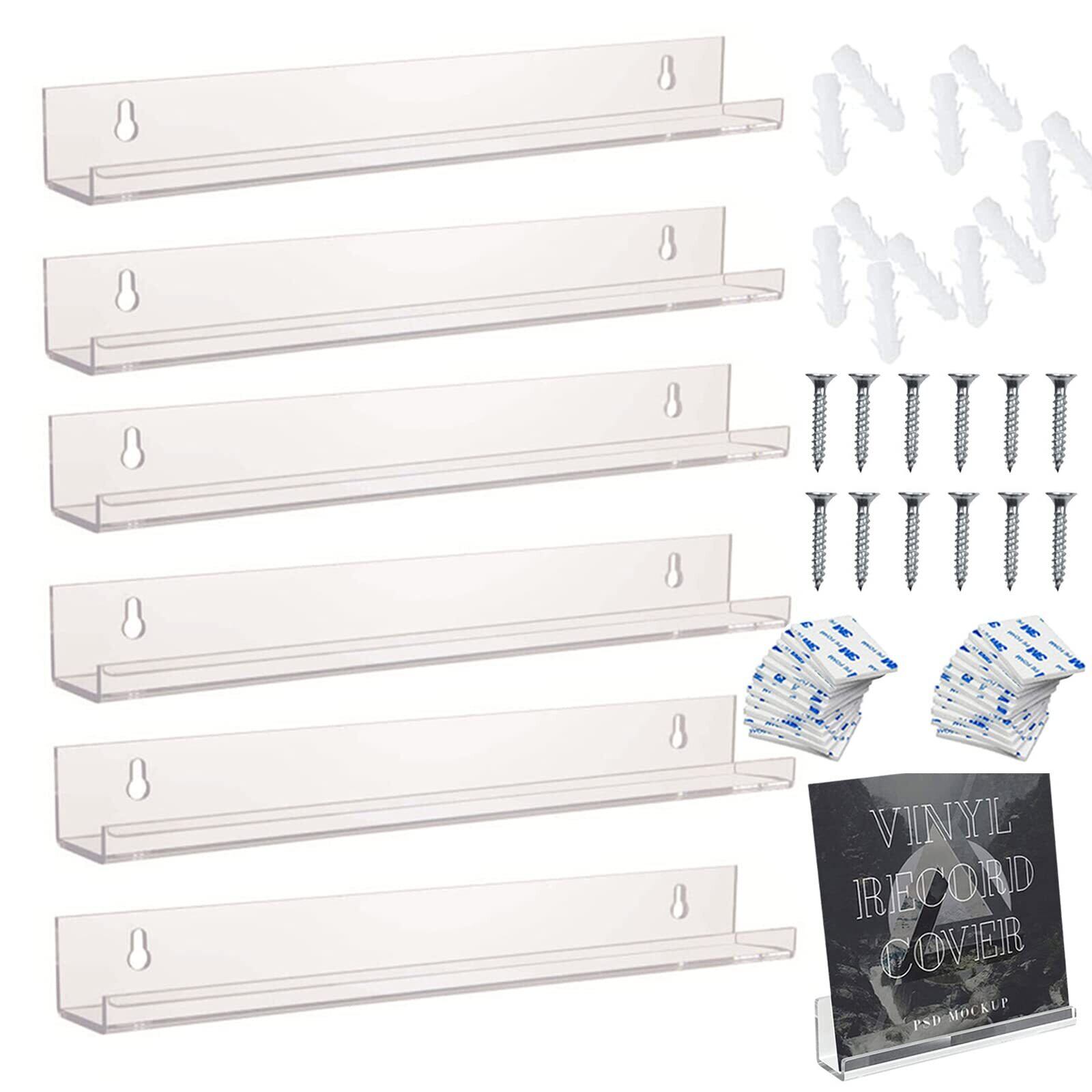 aninako レコードラック 透明 アクリル製 レコード壁掛け棚 展示棚 LPレコード cdラック ウォールディスプレイ マガジンラック 小物収納 簡単取付 クリア 2つのインストール方法 30.5x4.3x4.3CM (6個入り)