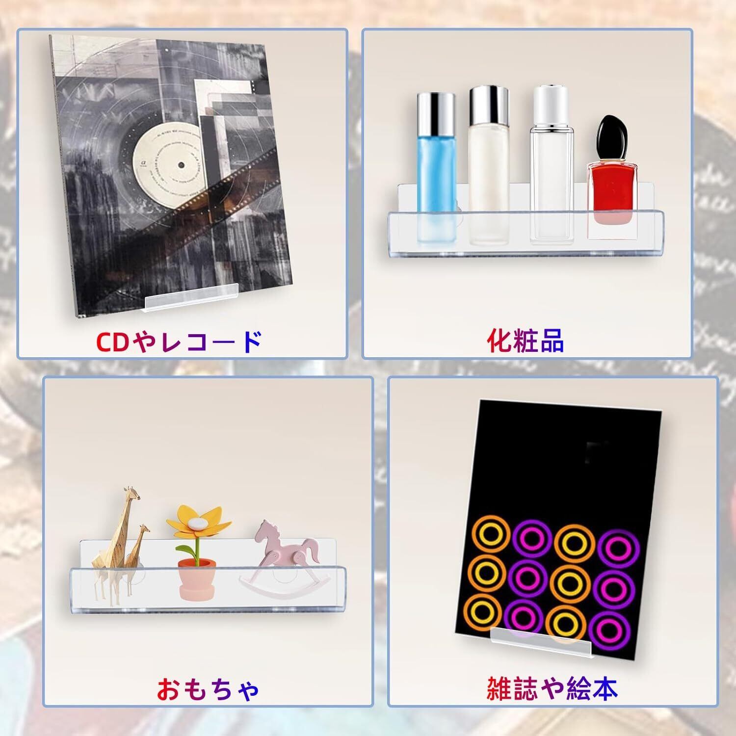 【簡単設置】cdラックの中に水準器を入れ、穴の印をつけて穴を開け、プラスチックの壁用アンカーを穴に入れ、ネジを締めます。透明な棚はレコードのレイアウトを完全に表示することができます。また、本、レコード、香水、収集品、フォトフレームなどの他のものを保持することができます。