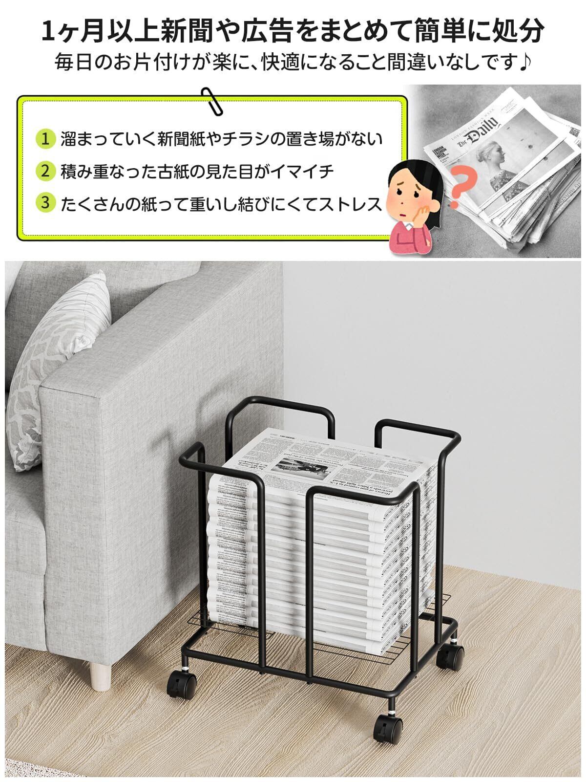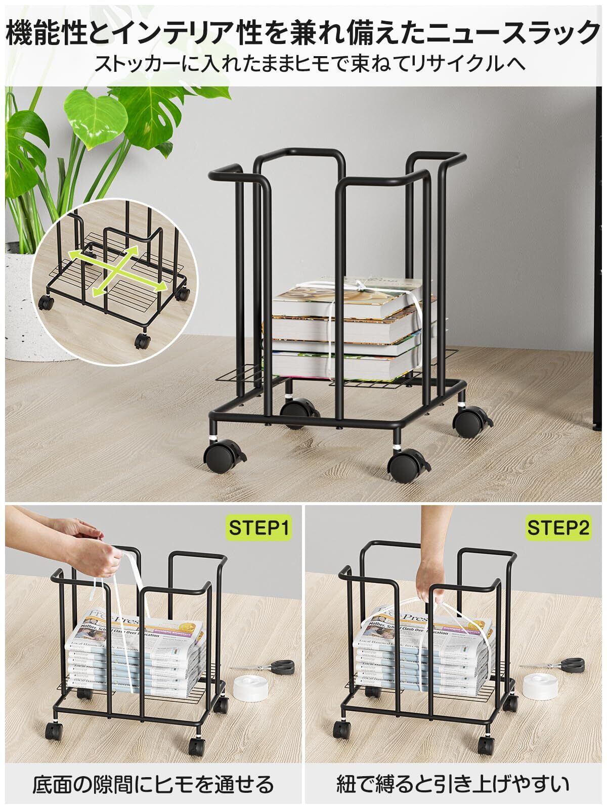 TTWO 新聞ストッカー 耐荷重10kg 新聞紙ストッカー 新聞ラック 丈夫スチール製キャスター付き 新聞紙置き場 新聞ごみ A4 雑誌ストッカー ニューズラック バスケット 自宅 家庭用 会社 梱包便利 整理整頓 収納雑貨 インテリア オフィス お洒落 北欧 モダン 新聞入れ 新聞雑誌まとめ (ブラック)