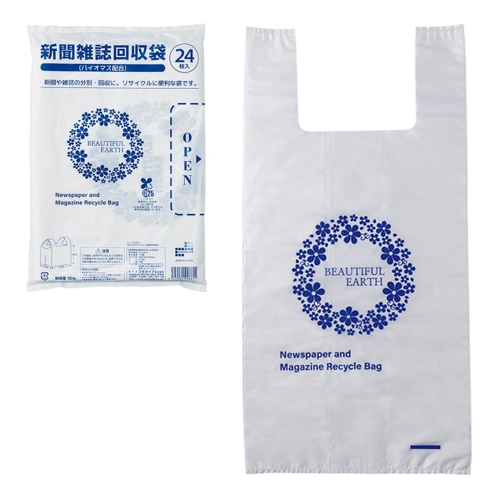 コモライフ 新聞雑誌回収袋 24枚入 (バイオマス配合) 新聞紙 雑誌 回収 袋 古紙回収 ゴミ袋 分別 エコ 丈夫