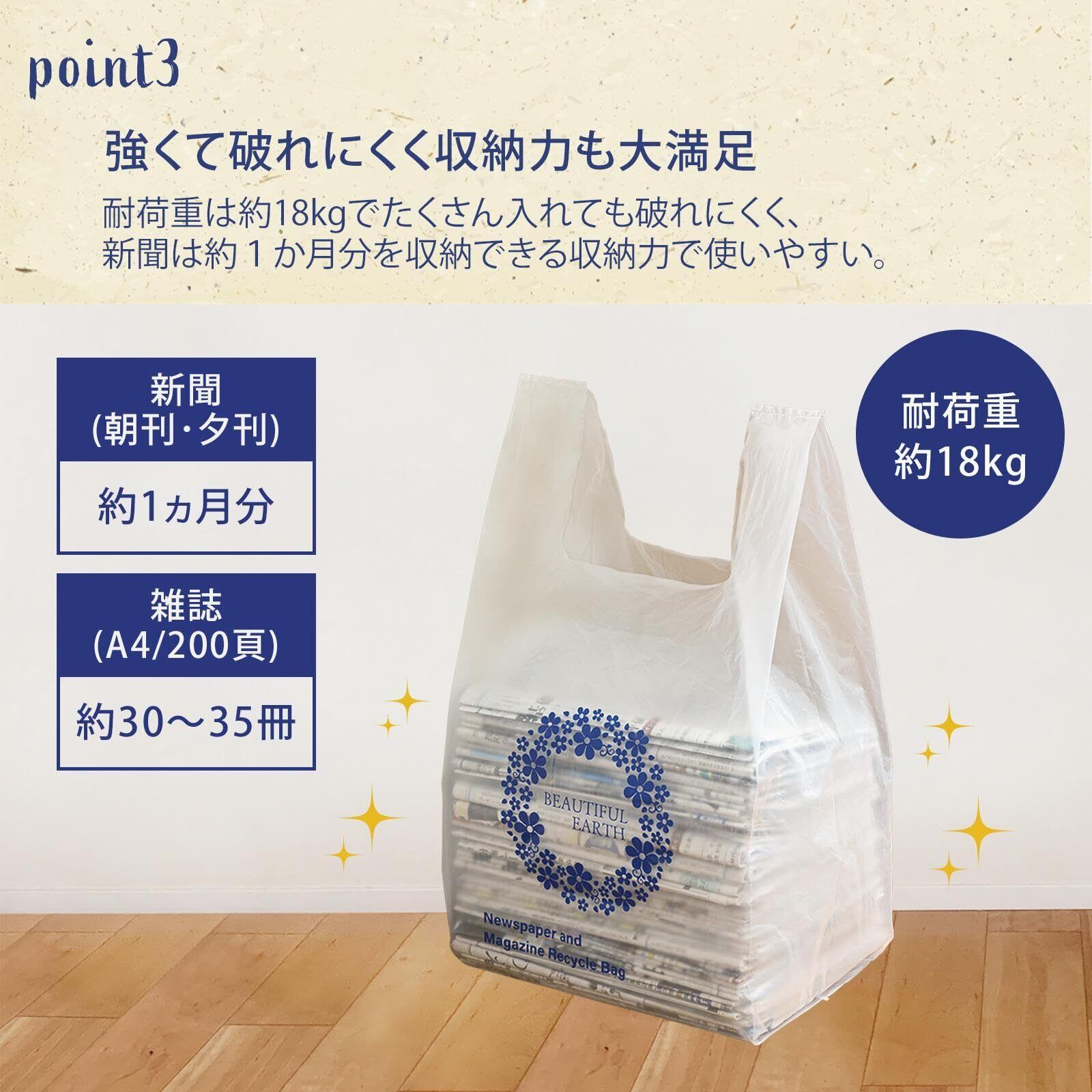 強くて破れにくく、新聞は約1か月分入る収納力!