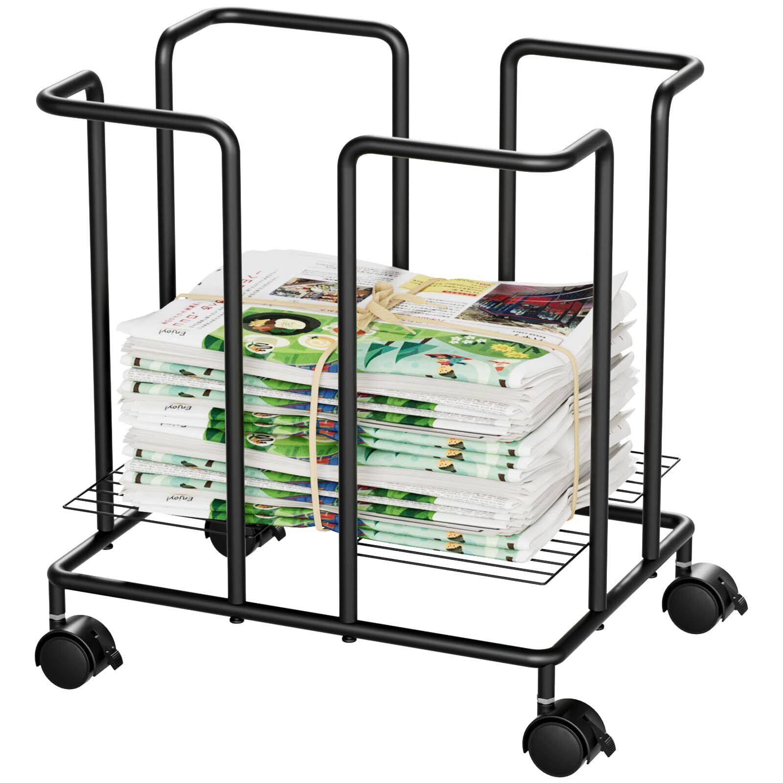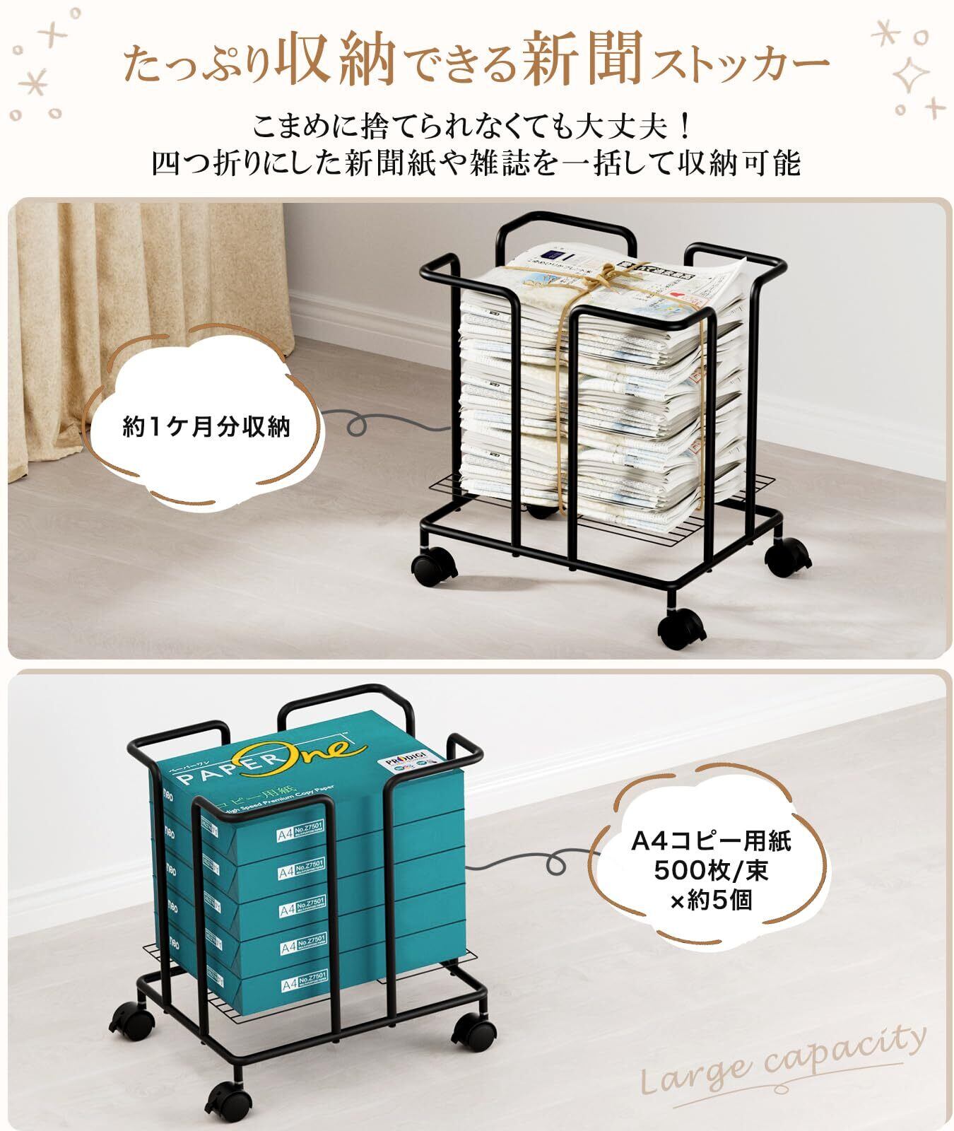 新聞ストッカー 新聞紙ストッカー DAIWIN 紐が通せる 耐荷重10kg 新聞雑誌ストッカー 新聞入れ キャスター付き ストッパ機能 新聞紙 回収袋 A4雑誌 古紙 ストッカー 雑誌 収納 移動・掃除便利 新聞ラック ストッカー 収納 ブラック
