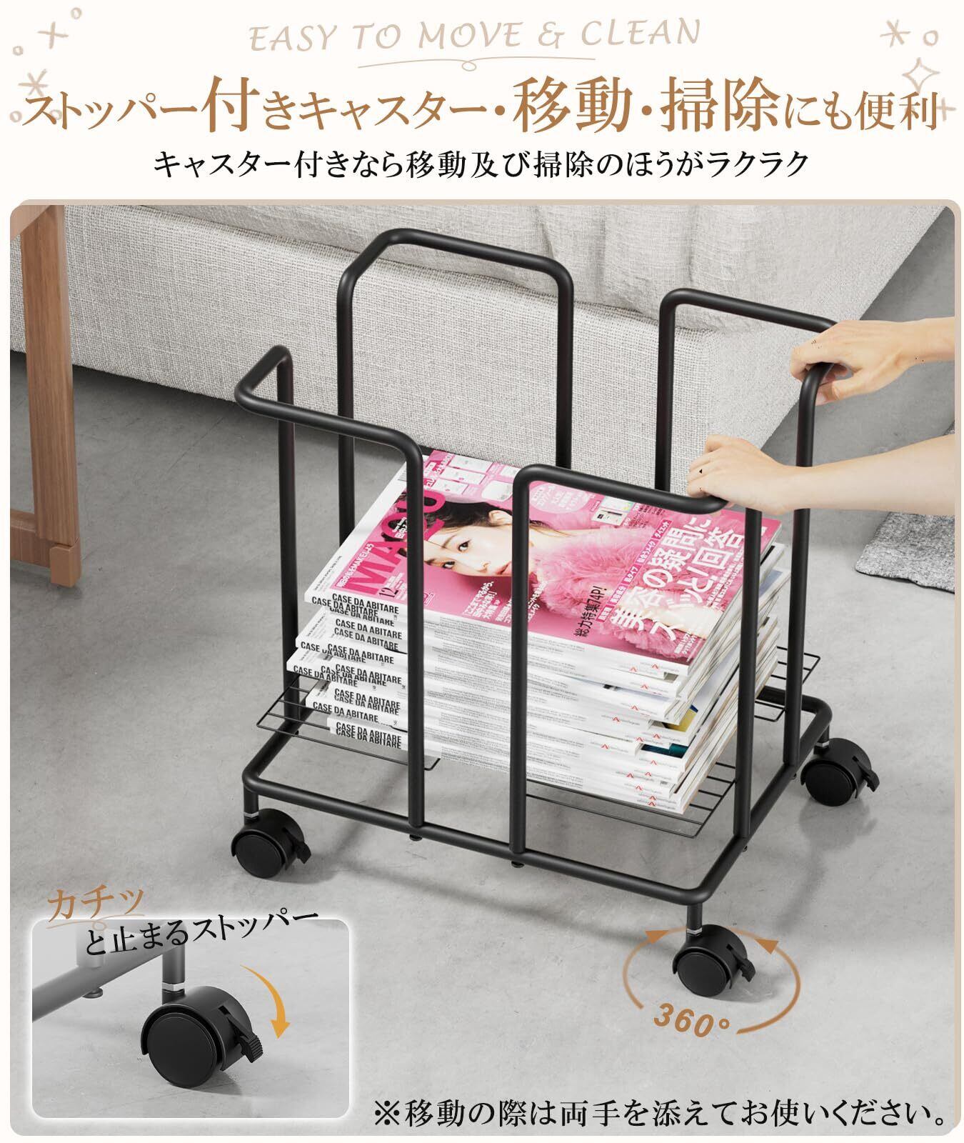 【キャスター付き・移動や掃除便利】キャスター付きで、ストッパ機能を持つこの新聞雑誌ストッカーは、汚れた雑誌や新聞もスッキリと収納できます。360°全方向に動かせるので、移動や掃除がとても楽に行えます。また、ストッカー 収納がどんなに積み重ねても、雑誌がどれだけ重くても、押し入れの出し入れ等がスムーズできます。
