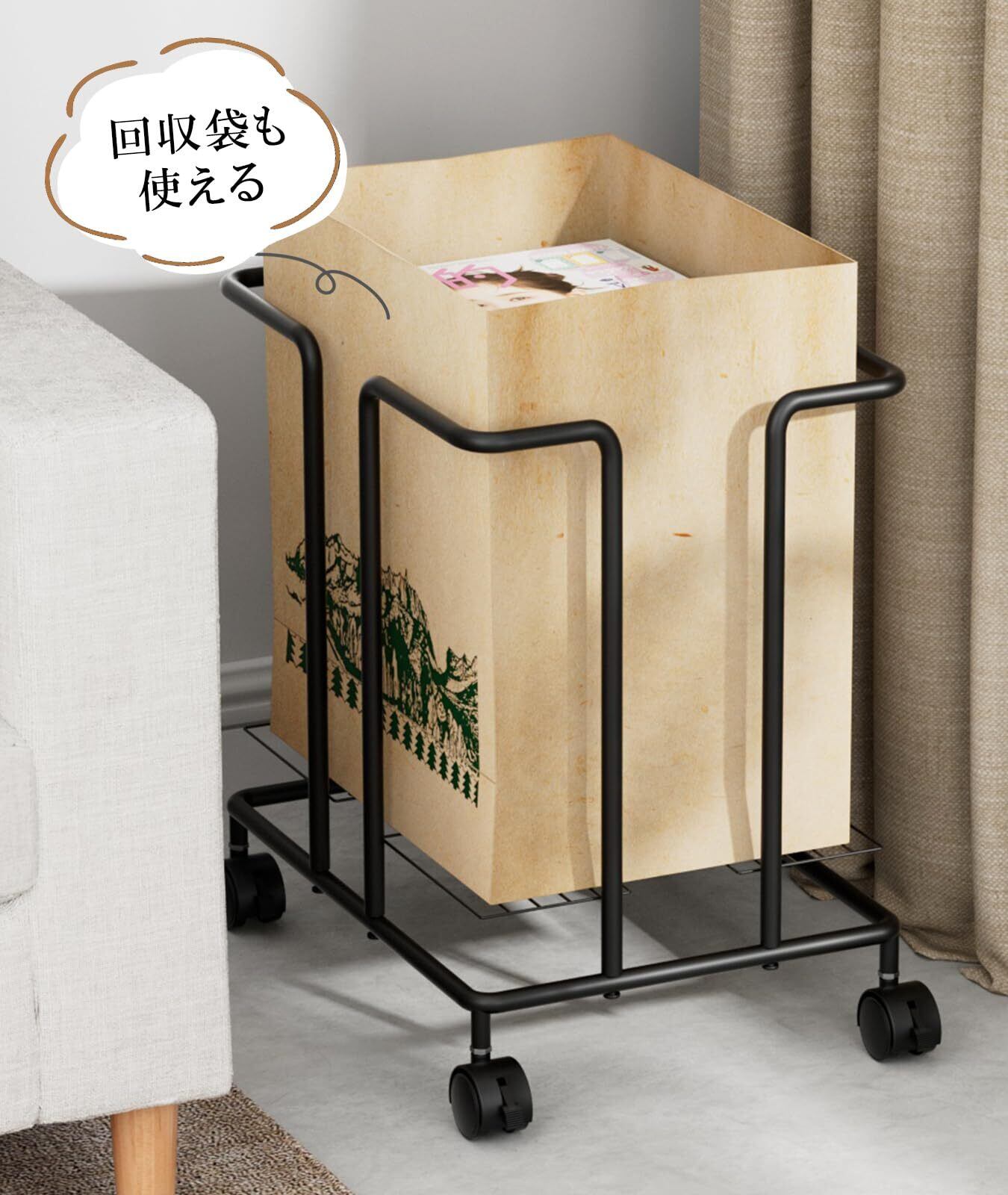 【高荷重・回収袋も使え】耐荷重は約10kgで、頑丈なスチール素材を使用し、焼付塗装で仕上げられています。中身が増えても形が崩れることなく、しっかりとした保管できます。ストッカー 収納の変形や破損の心配もなく、長期間安心して使用できます。この古紙 ストッカーが回収袋にも使えて、古紙回収袋にストックすれば、回収時に袋ごと簡単に取り出せます。