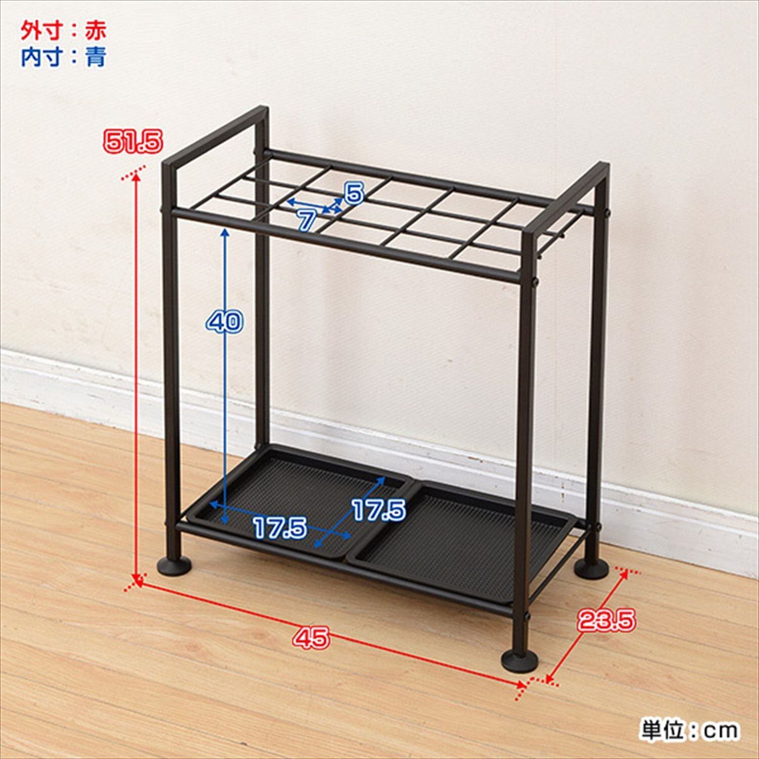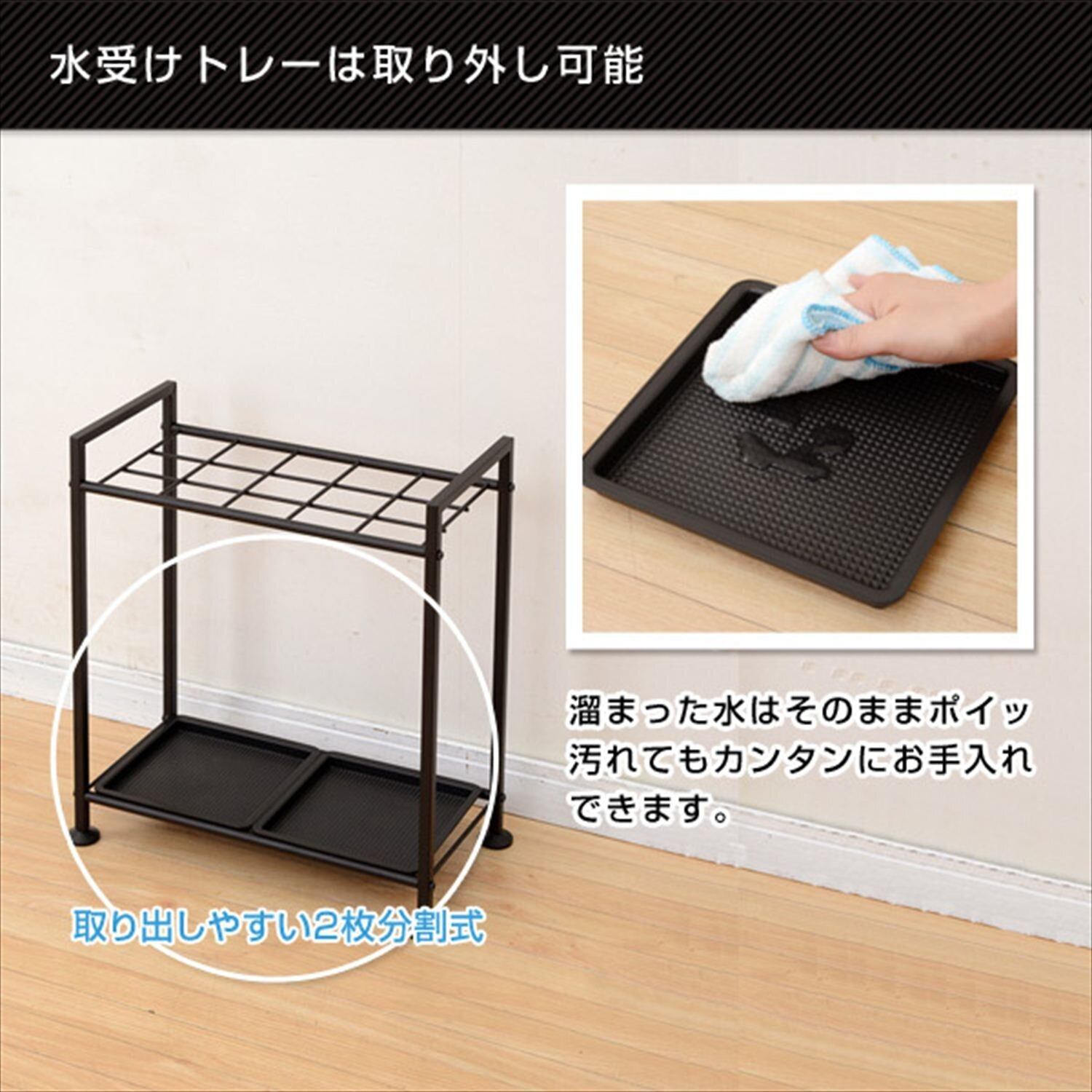 山善(YAMAZEN) 傘立て 幅45×奥行23.5×高さ51.5cm スリム 15マス サビにくい 水受け取り外し可能 組立品 ブラック UMBS-L(BK)