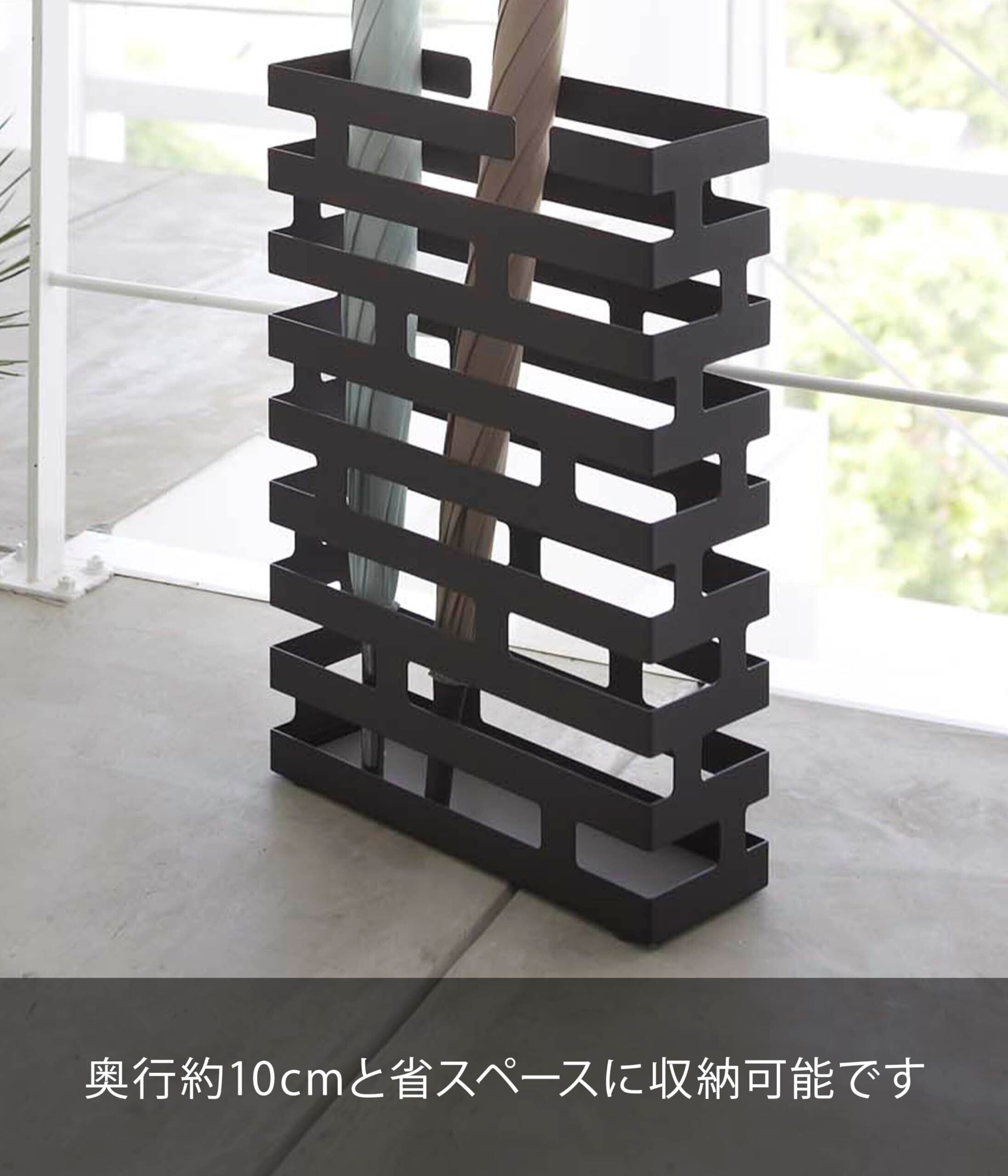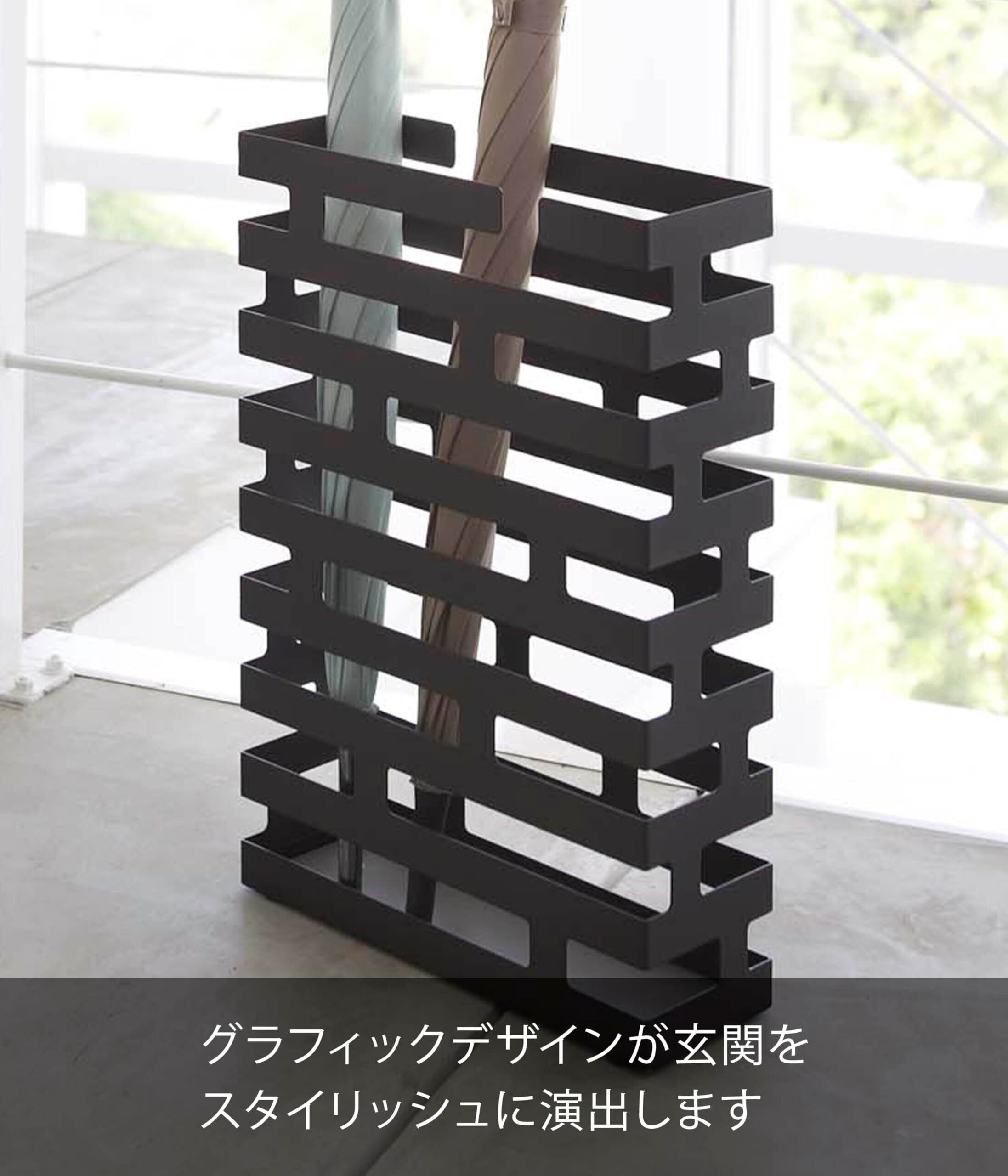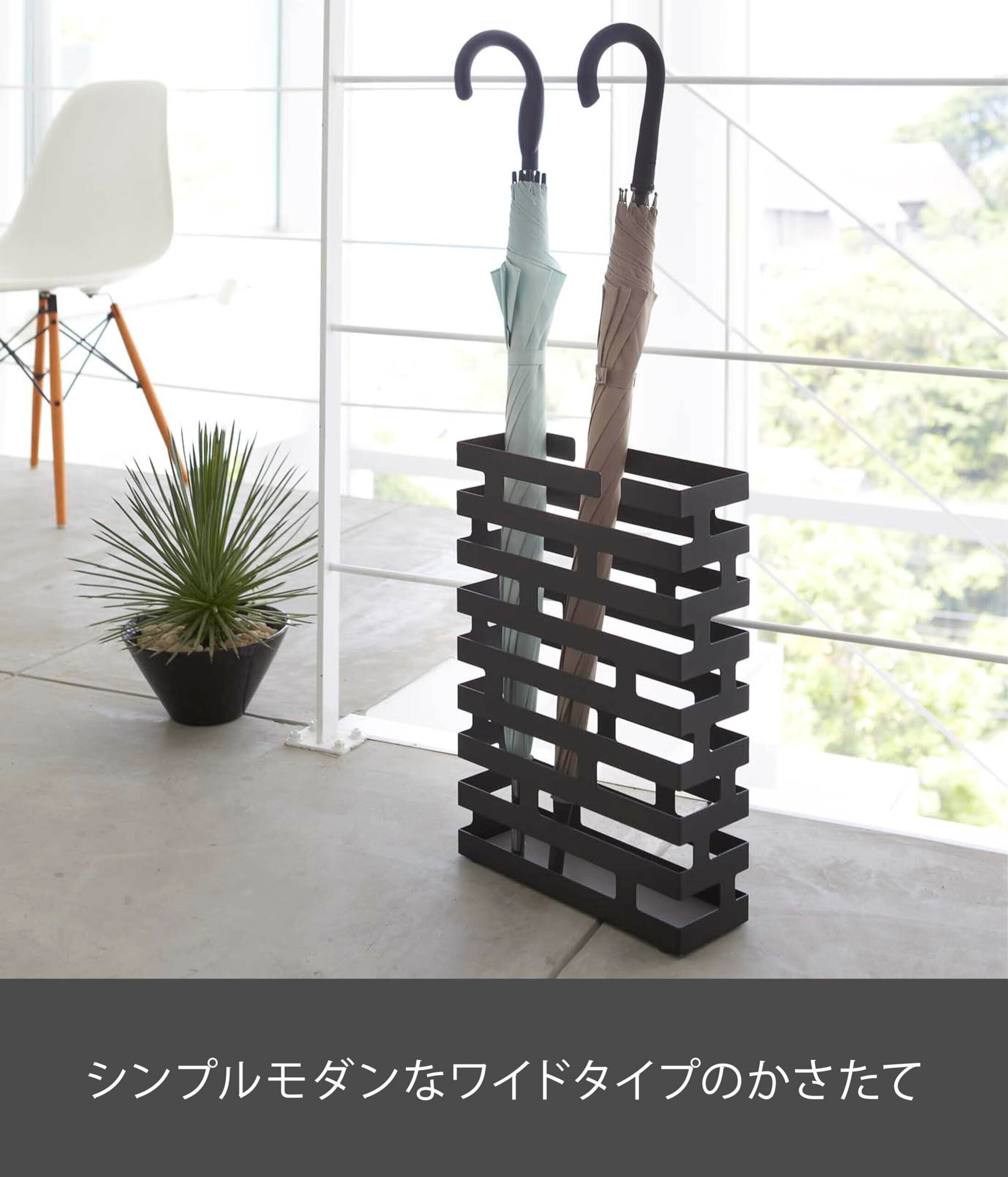 山崎実業(Yamazaki) かさたて ワイド ブラック 約W30×D10×H43cm ブリック BRICK 傘立て 折り畳み傘も収納可能 2361