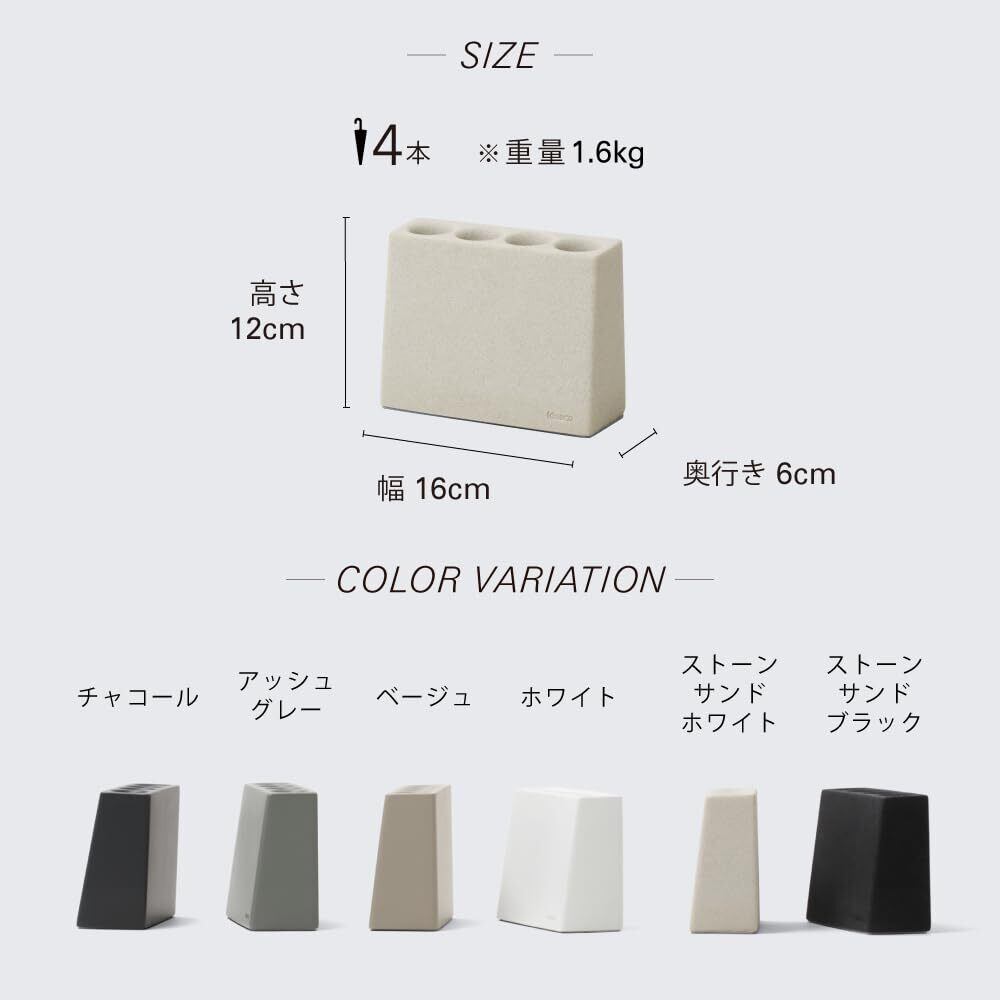 最もスリム・コンパクトな4本立て 奥行6センチ幅16センチに4本の傘が収まります。背中は垂直に立ち上がり壁との隙間もなくすっきり収まります。