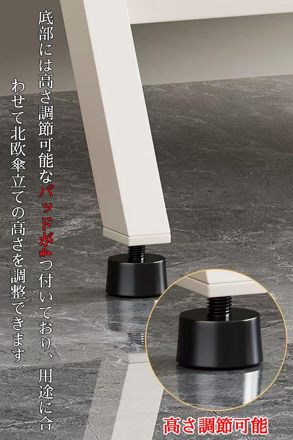【防水・倒れない】:当社の玄関 外傘立ては高品質の炭素鋼製で、防錆塗装が施されているため、耐久性に優れ、長くお使いいただけます。さらに、倒れない傘立て本体の重量は1.6kgと軽量なので、転倒を効果的に防ぎます。底部には高さ調節可能なパッドが4つ付いており、用途に合わせて北欧傘立ての高さを調整できます。