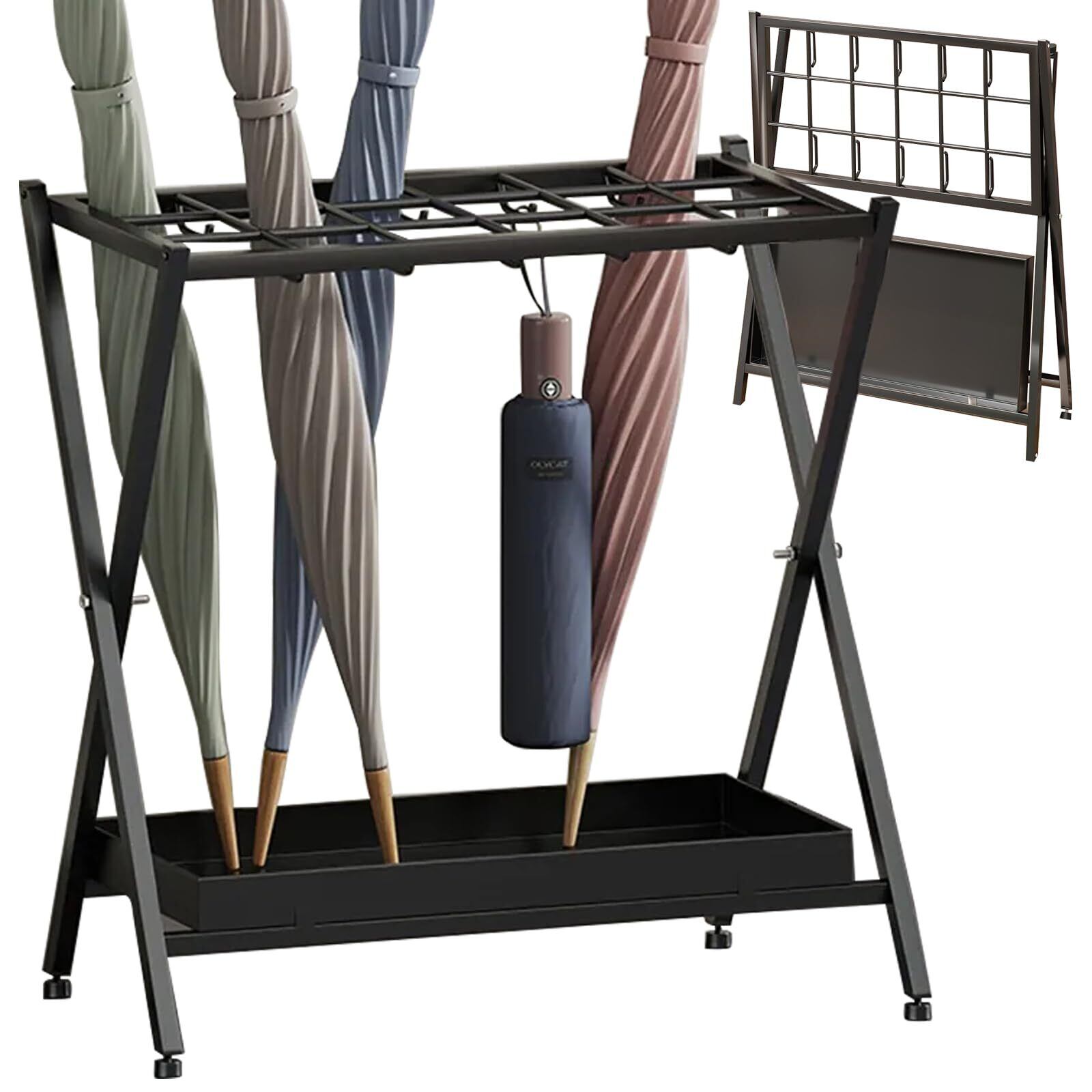 傘立て スリム 業務用 オフィス 玄関 おしゃれ コンパクト 大容量 収納 28本傘 かさたて 倒れない シンプル 傘置き 屋外 北欧 店舗用 傘だて 開いたまま 省スペース 軽い 折りたたみ umbrella stand 大きい 耐久性 防水 (ブラック)