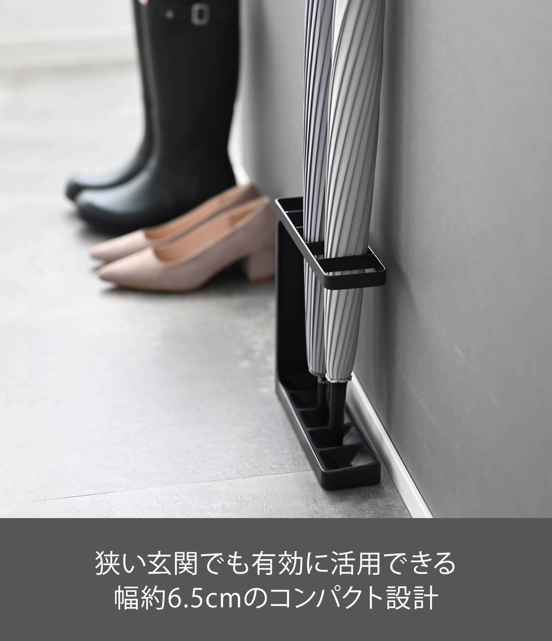 奥行わずか6.5cm!スリムで場所を取らない、GRIND アンブレラスタンドです。背丈が低く圧迫感がないので、狭い場所でもスッキリ置けて、上質な玄関空間の演出にピッタリのアイテムです。size:高さ24.3×幅23.5×奥行6.5cm素材:本体/スチール(粉体塗装)、受け皿/ポリプロピレン説明書:あり※受け皿取り外し可能※箱入りmade in China※傘を開いたまま収納すると、不安定な状態になりますので、傘を束ねた状態で収納して下さい。※傘のサイズや形状によっては収納できないものもあります。