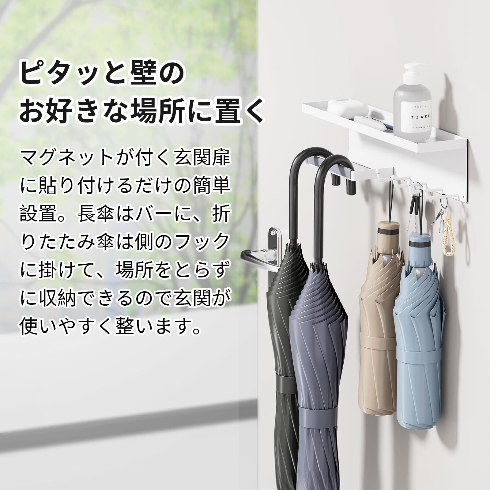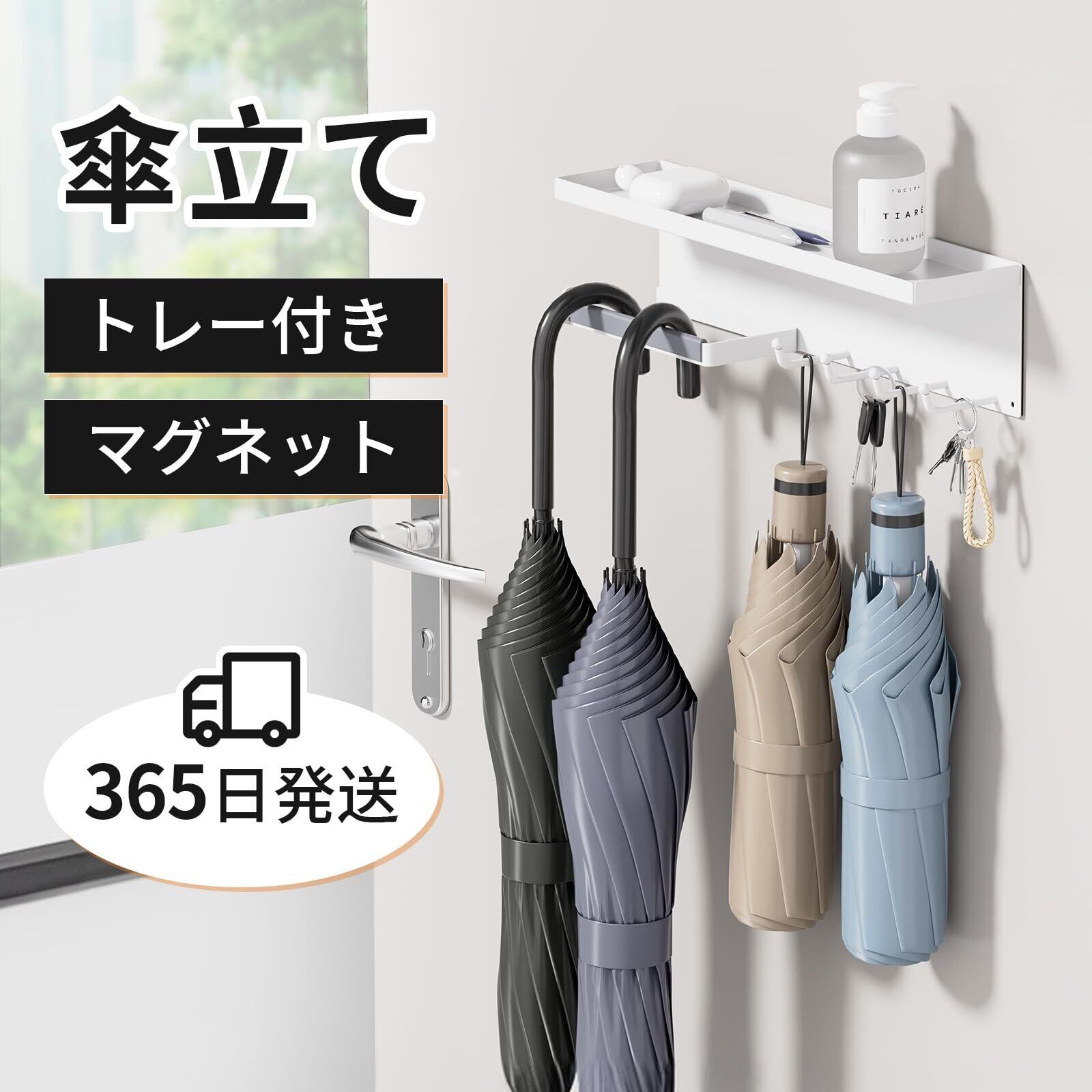 BOIVSHI マグネット 傘立て トレー付き 小物収納 アンブレラスタンド 玄関 ラック 傘掛け 玄関ドア用 玄関収納 スリム ホワイト トレー付き設計
