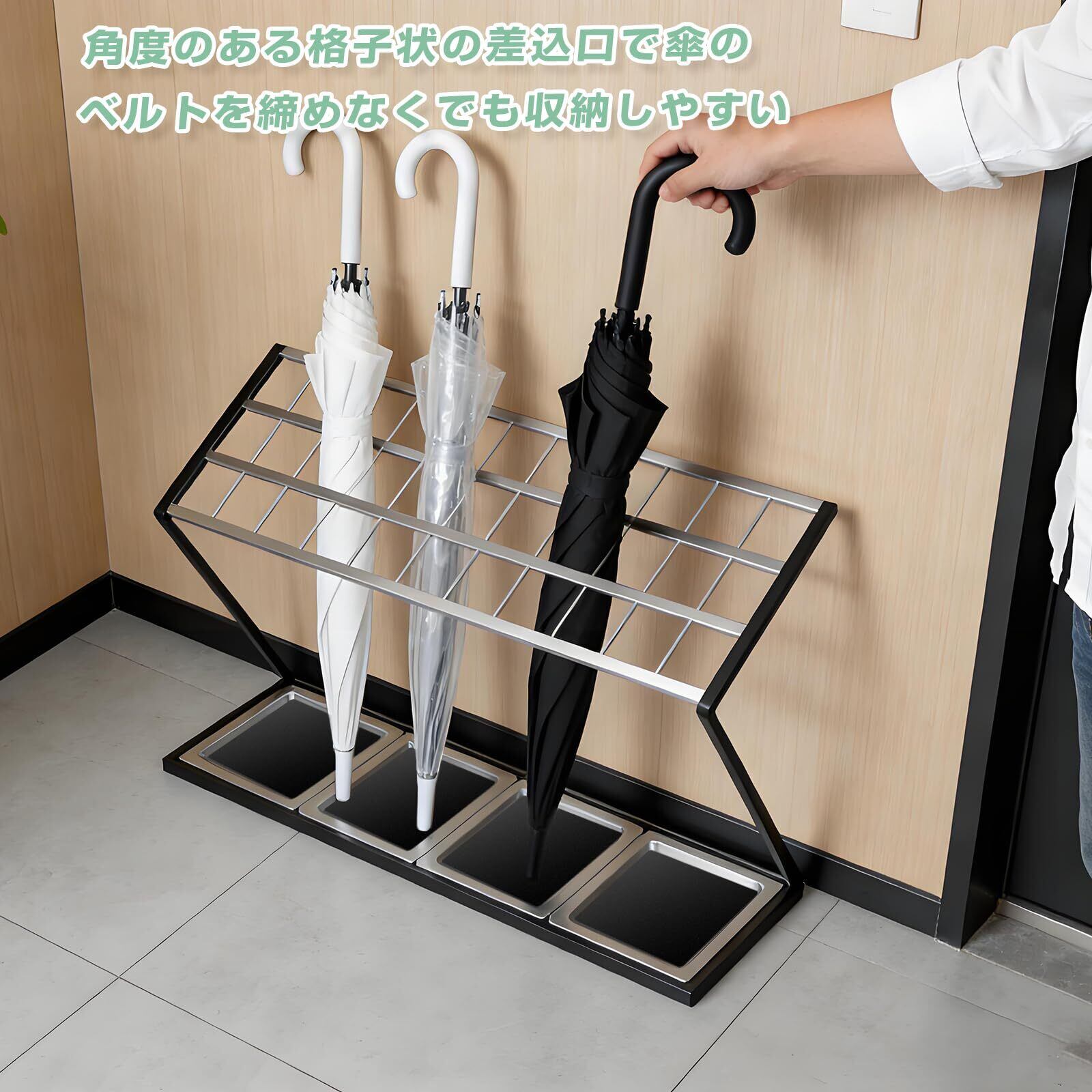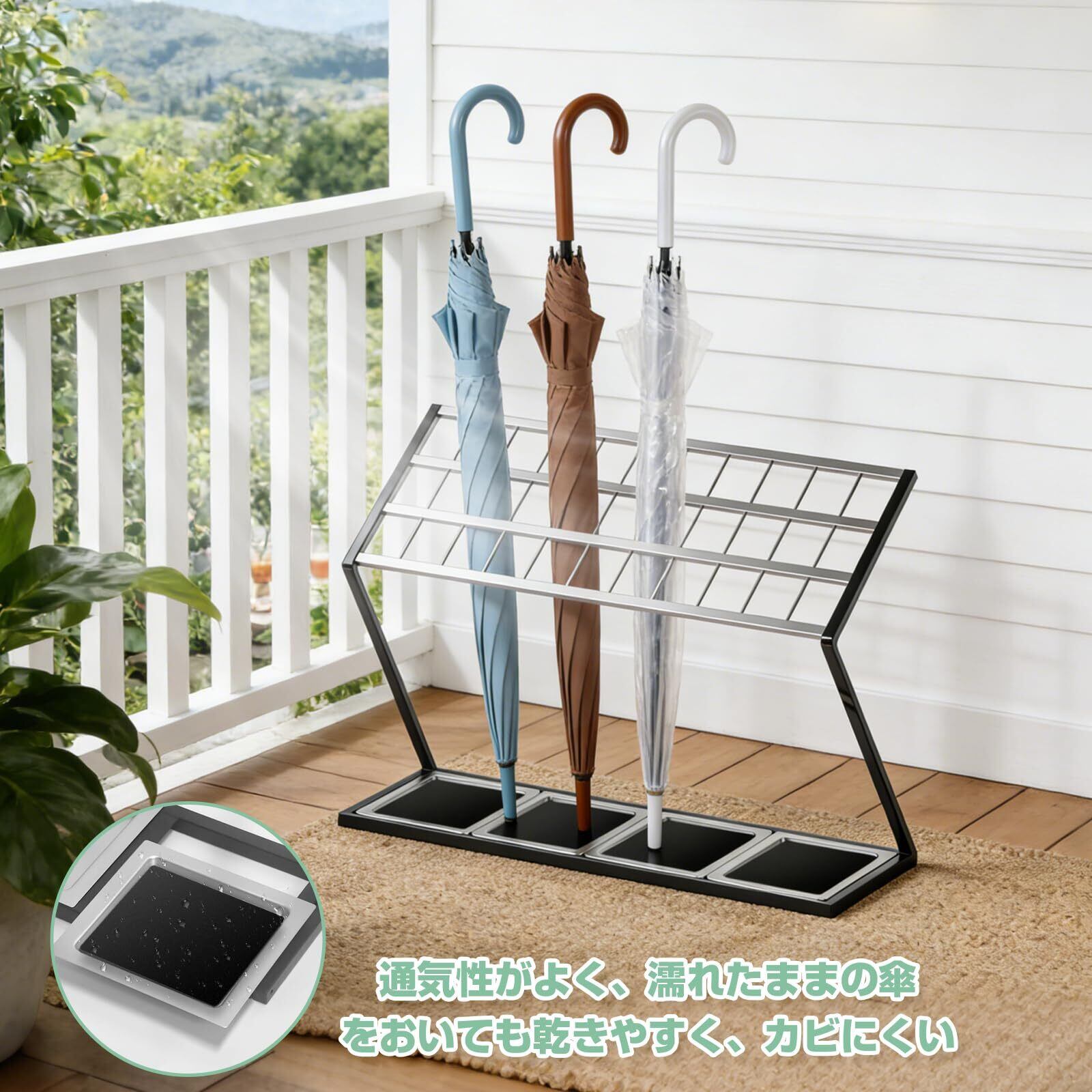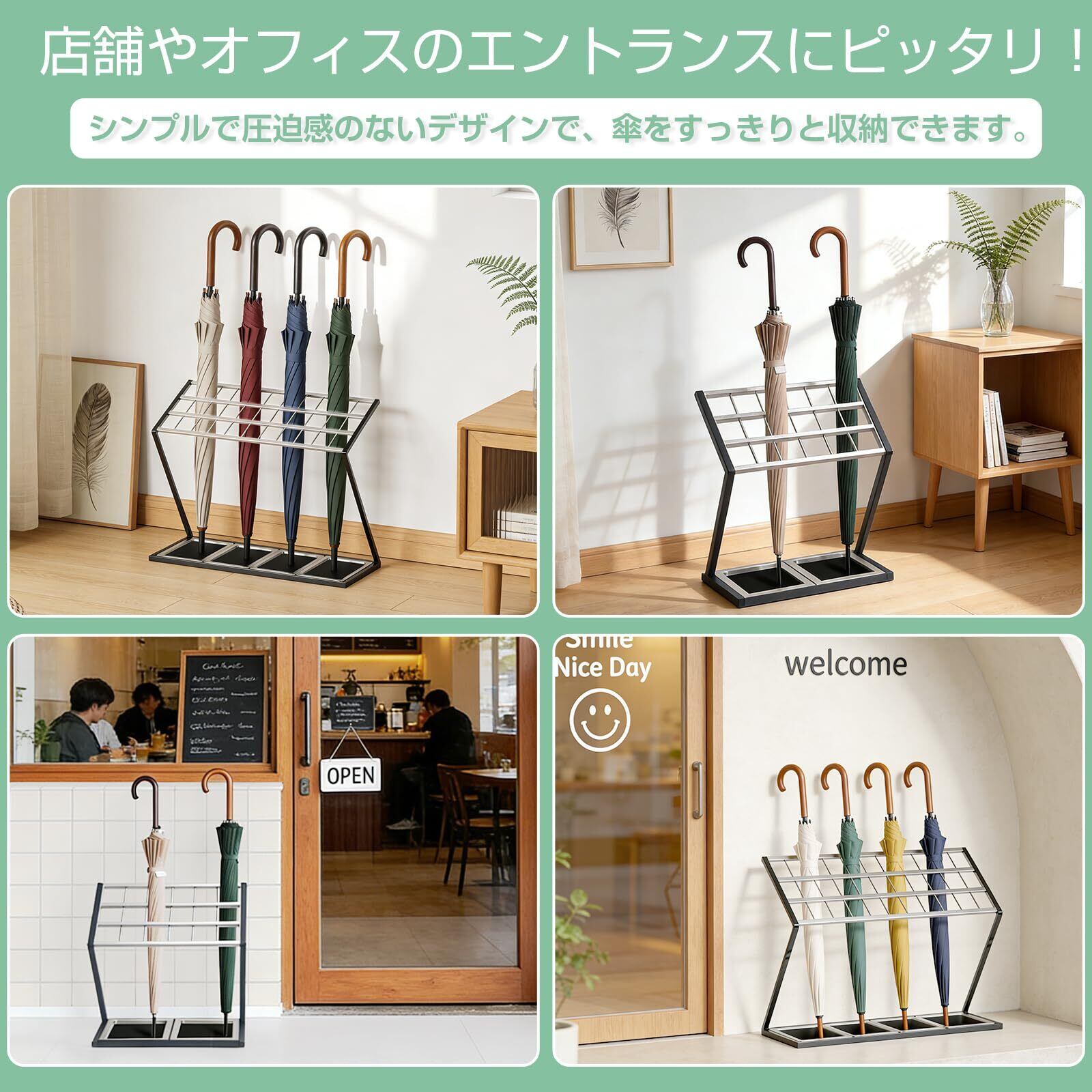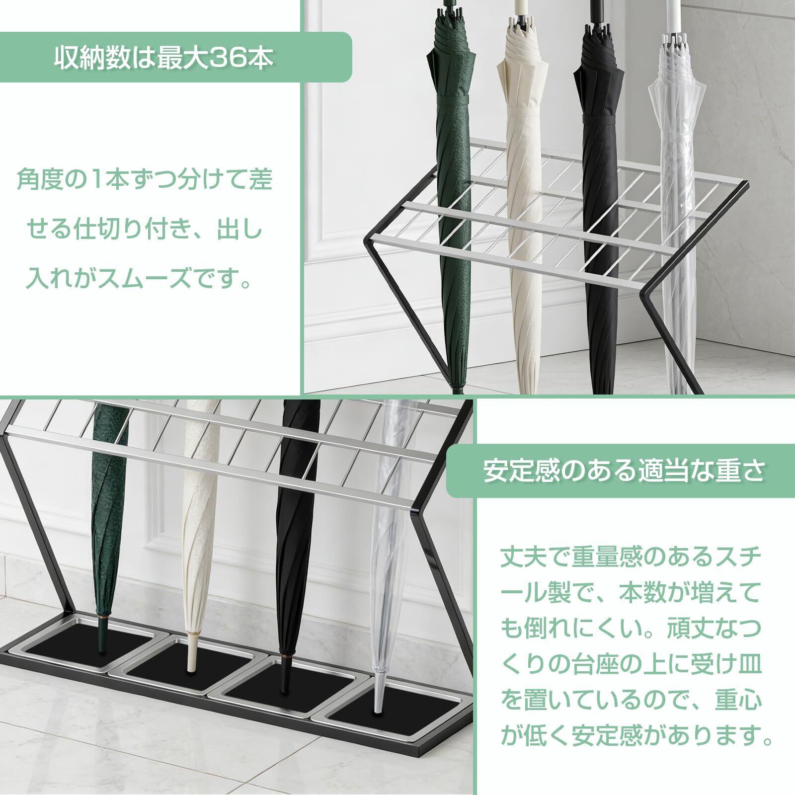 傘立て 長傘 傘入れ 傘たて 錆びにくい 水受け取り外し可能 おしゃれ アンブレラスタンド 玄関収納 屋外 業務用 36本収納 W87×D24×H50cm ブラック