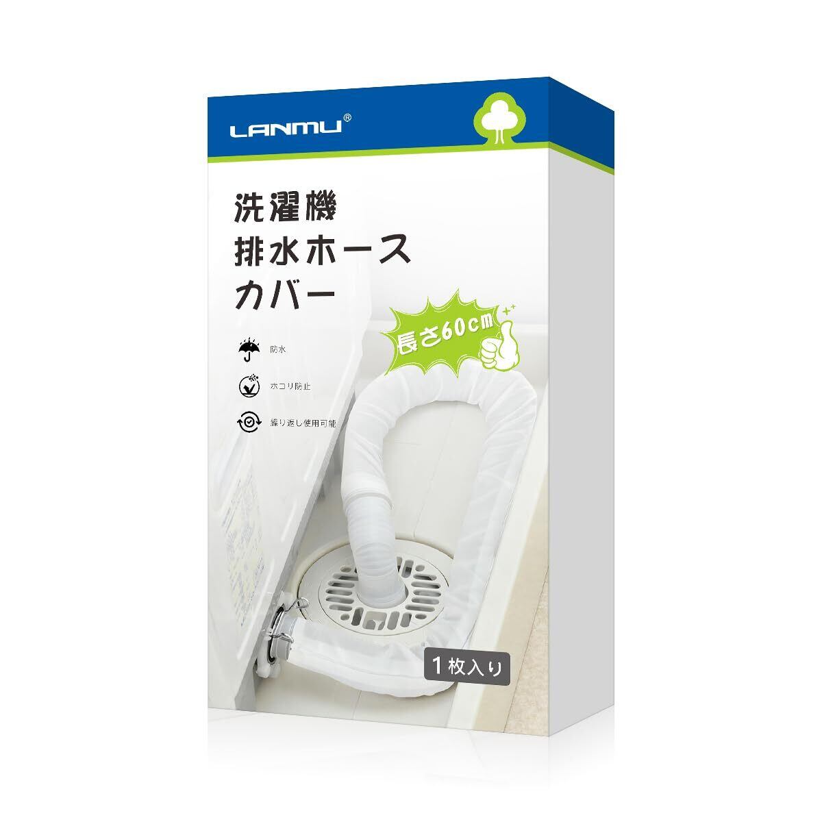 LANMU 洗濯機排水ホースカバー 1枚入り 洗濯機ホースカバー 洗濯機ホース隠し 排水ホースカバー 洗える 排水ホースカバー ファスナー 長さ60cm ホワイト 防水 防塵 ホコリ防止 繰り返し使用可能 排水口 ファスナー 取り付け簡単