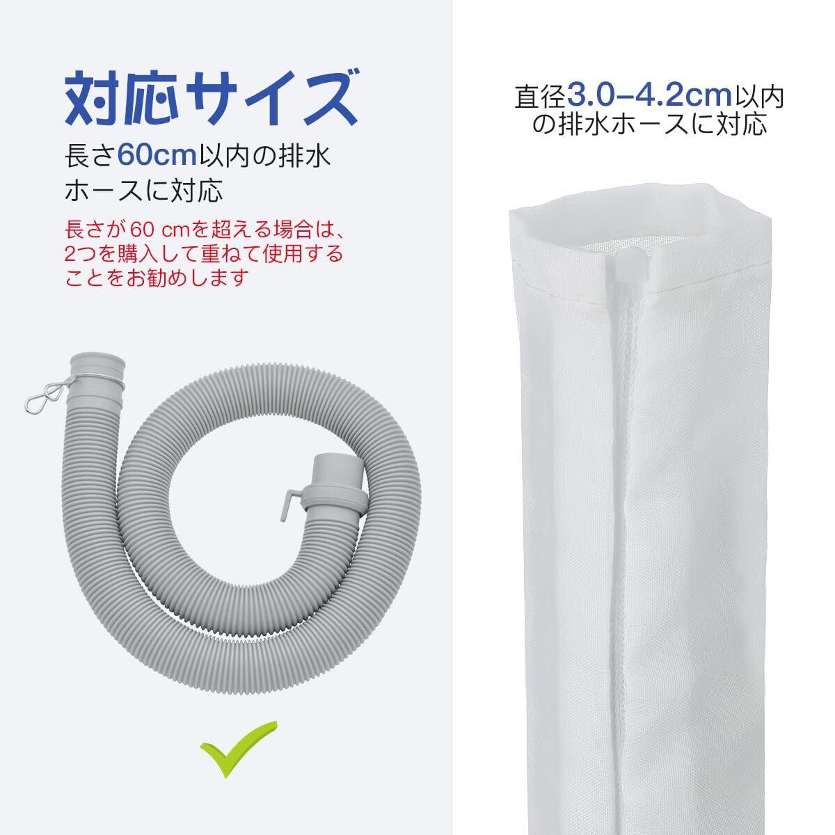 【対応サイズ】:洗濯機ホースカバーは直径4.2 cm以内の排水ホースに適しています。長さ60 cm以内の排水ホースはすべて使用でき、排水ホースの長さが60 cmを超える場合は、2つを購入して重ねて使用することをお勧めします