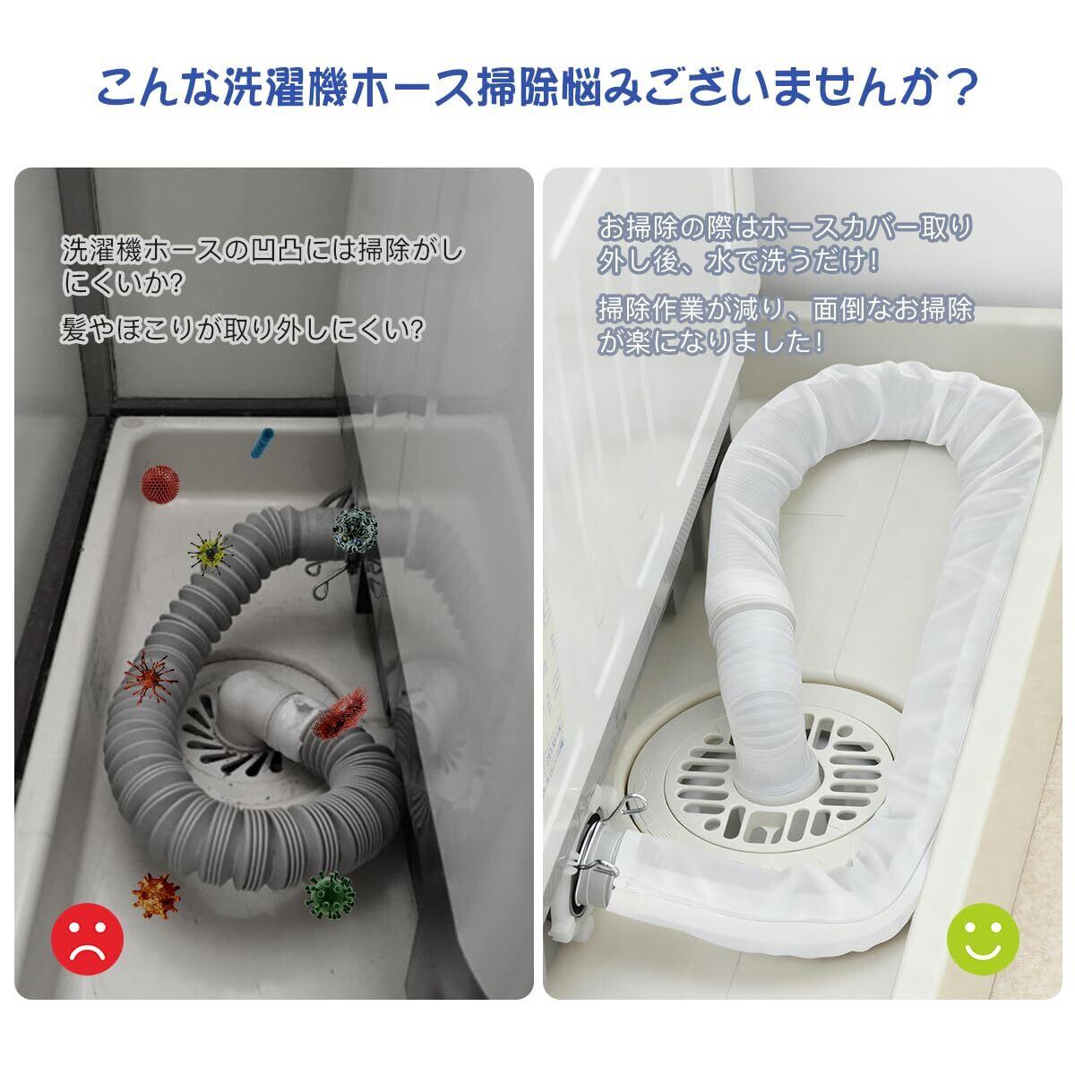 【ホコリ防止】:排水ホースカバーは防水性が強く、洗濯機排水管構造による清掃問題を効果的に解決でき、清掃の頻度を減らすことができ、日々の掃除が楽になります。