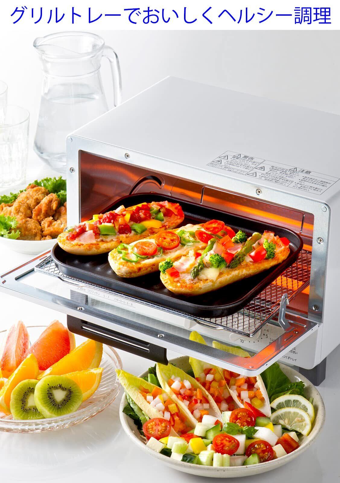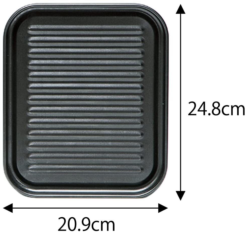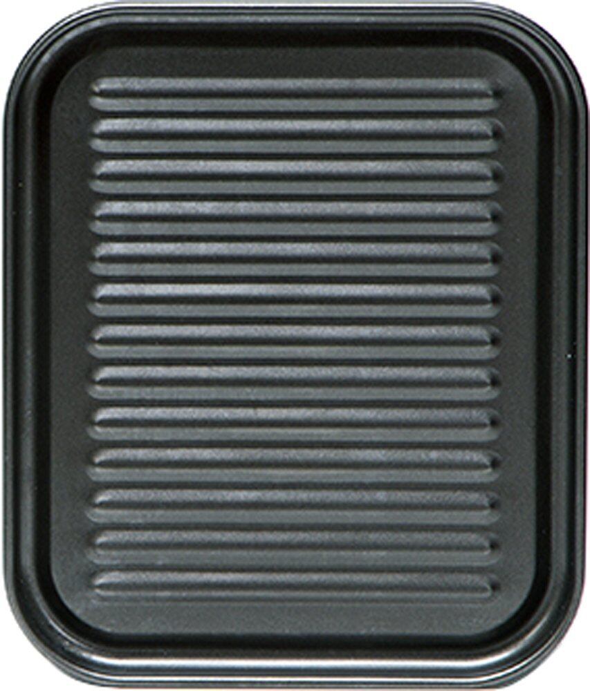 大型の角型トレー。魚焼きグリル・オーブントースターの両方で使え、食材から出る余分な油が溝に落ちてべたつかずヘルシー調理。