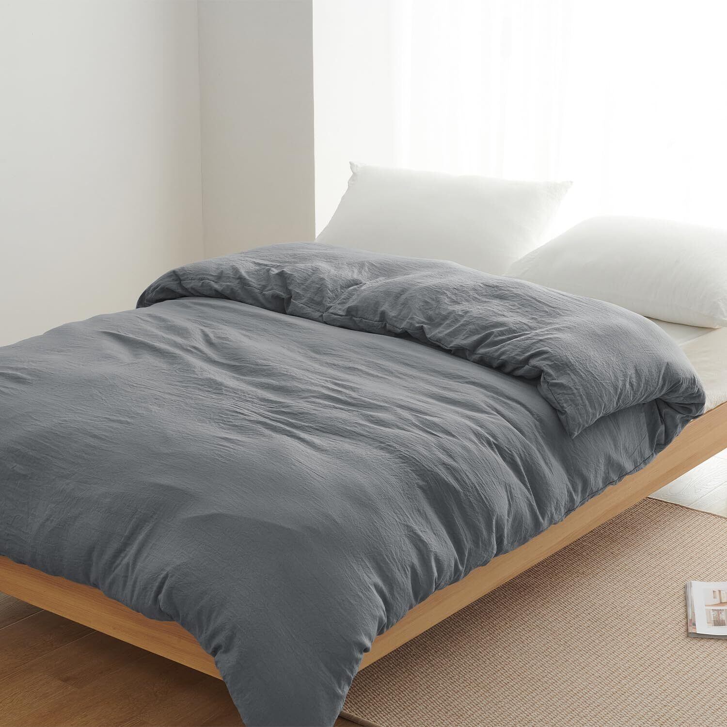 クモリ(Kumori) 掛け布団カバー シングル 洗いざらし 吸湿速乾 素肌にやさしい 柔らかい しっとり ピーチスキン シワ加工 丸洗いOK オールシーズン 布団カバー 掛ふとんカバー (シングル・150X210cm ダークグレー)