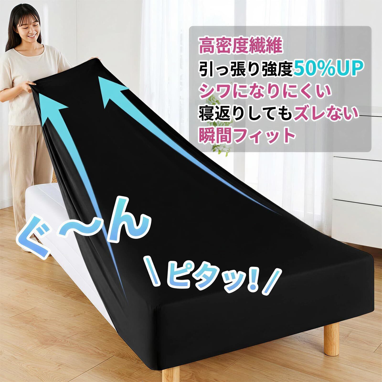 ボックスシーツ シングル 100×200cm ブラック マットレスカバー ベッドカバー シーツ 吸水速乾 抗菌・防臭 耐久性が高い オールシーズン 厚さ 5cm~30cm のベッド/マットレス/敷き布団対応