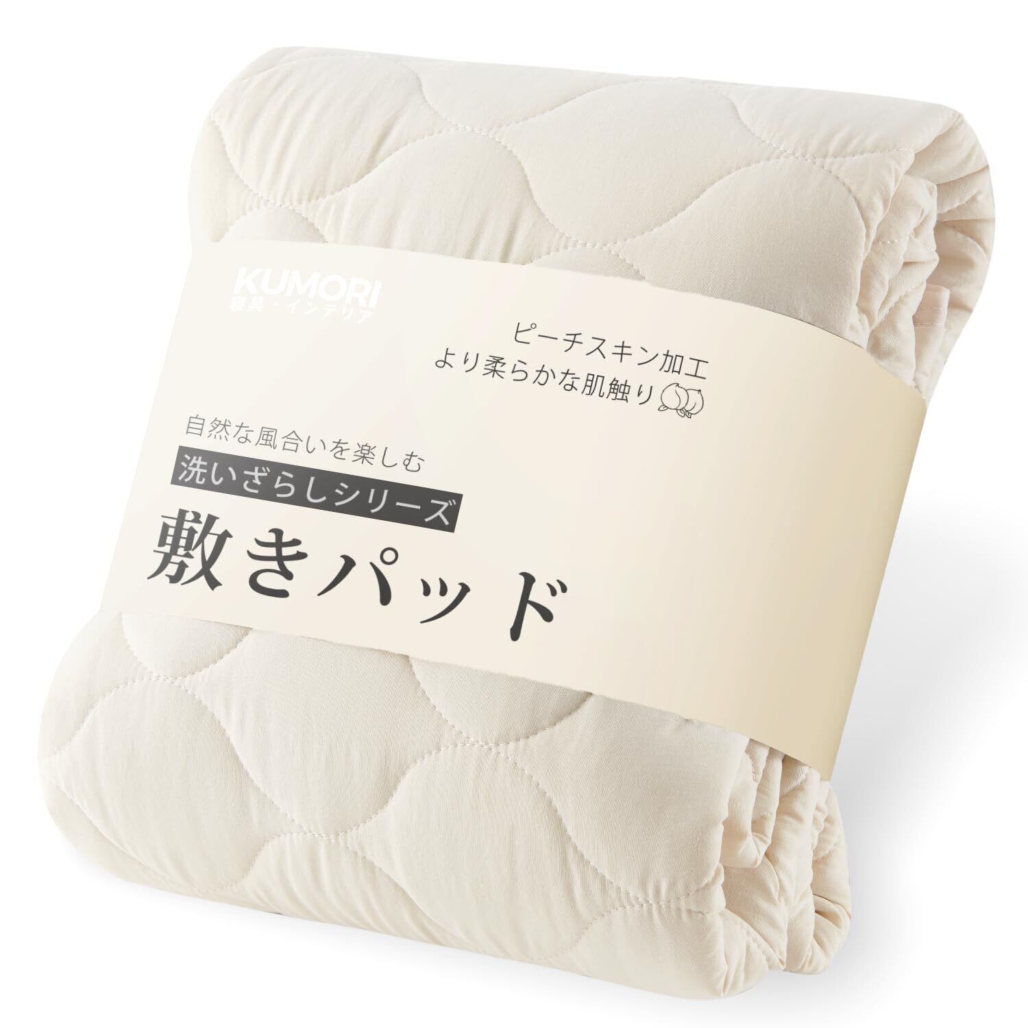 クモリ(Kumori) 柔らかい 敷きパッド シングル 洗いざらし ベッドパッド 耐久性が高い 洗える 吸湿速乾 抗菌 防臭 防ダニ TEIJIN中綿 オールシーズン ベッドシーツ ピーチスキン シワ加工 素肌にやさしい マットレスパッド 着脱楽々 ベッドマット 100X200cm アイボリー