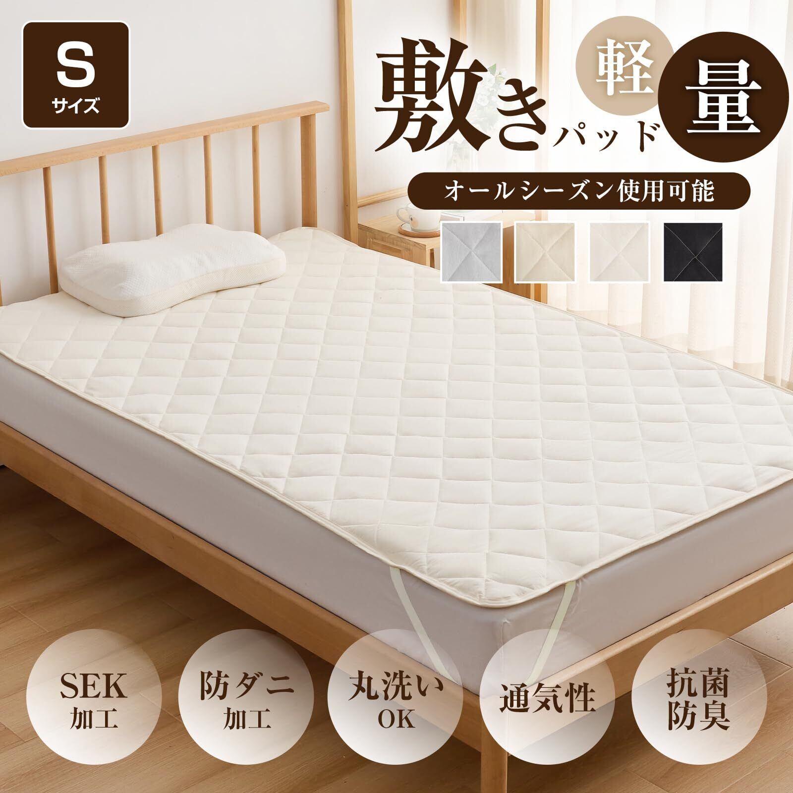fuwawa 敷きパッド シングル ベッドパッド 敷パット 洗える シーツ 抗菌防臭 防ダニ加工 オールシーズン ゴムバンド付き しきぱっと ベットパット 吸湿速乾 布団敷きパッド 無地 100x200cm アイボリーホワイト