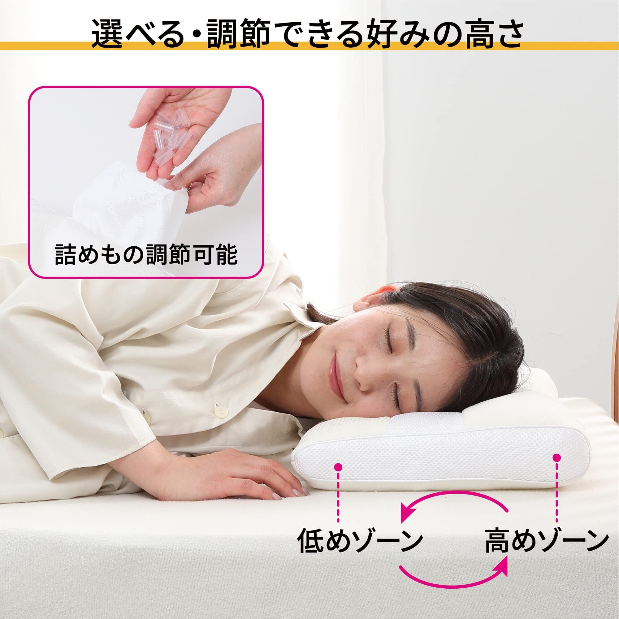 nishikawa スリープフィットネス 枕 洗える ほどよい弾力性 ソフトパイプ 頭・首・肩にぴったりフィット 高さ調整可能 仰向き寝 横向き寝 対応 40X35X6cm アイボリー EH93009491720
