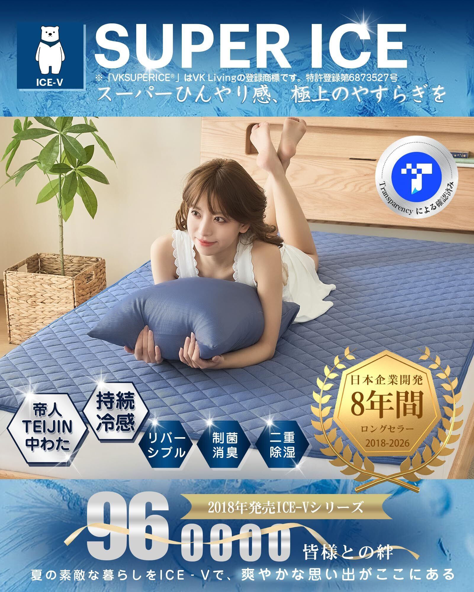 ❄️【VKSUPERICE糸冷感繊維(2026年新型)】2026年モデルは新たにPE素材追加、冷感機能さらにアップ。寝床内気候が温度33±1℃、相対湿度50±5%の範囲であれば、快適な睡眠が得られている。VKSUPERICE系は3本のナイロン冷感繊維と1本の業界トップクラスのPE冷感繊維を加えて、極細繊維で無数の空気の逃げ道がてき、蒸れにくく、冷感を加速させます。瞬時冷感だけでなく、持続冷感を実現!科学の力で体の温度調節を促し、朝までサラサラ。