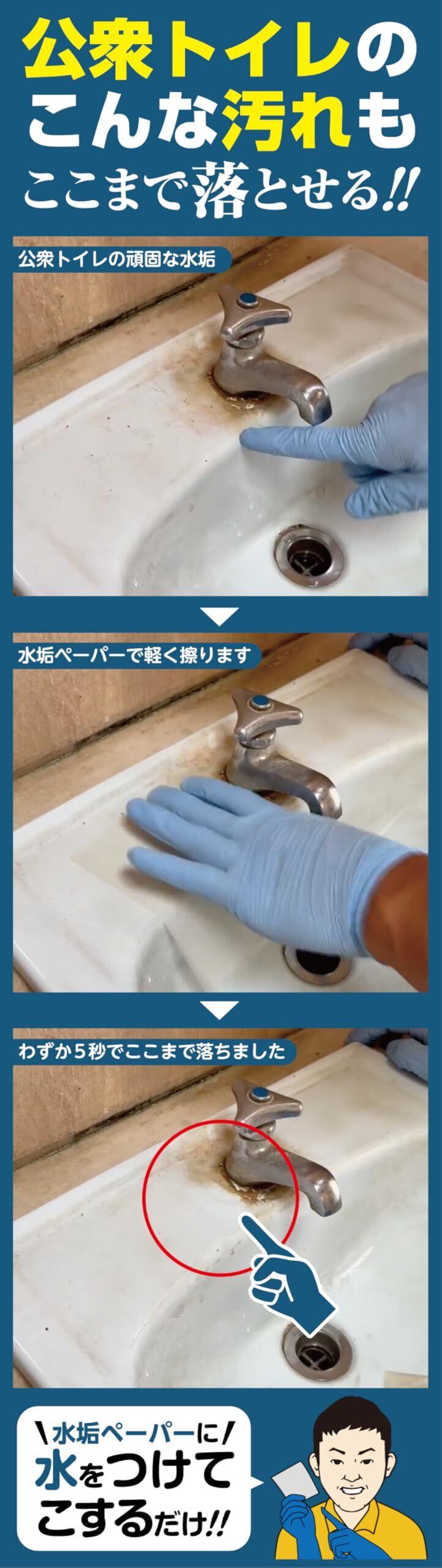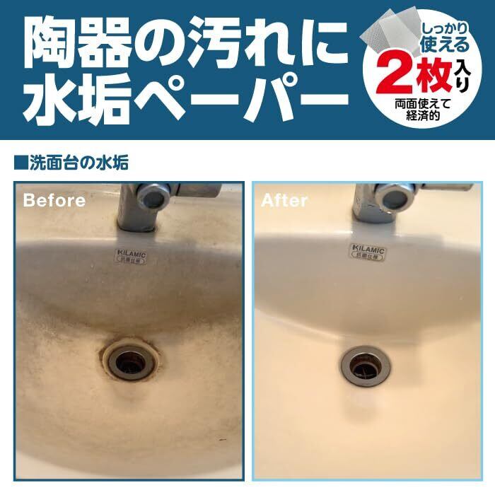 水垢ペーパー 2枚入り|トイレ・洗面台・陶器専用の強力汚れ落とし|プロ仕様・洗剤不要で尿石もスッキリ
