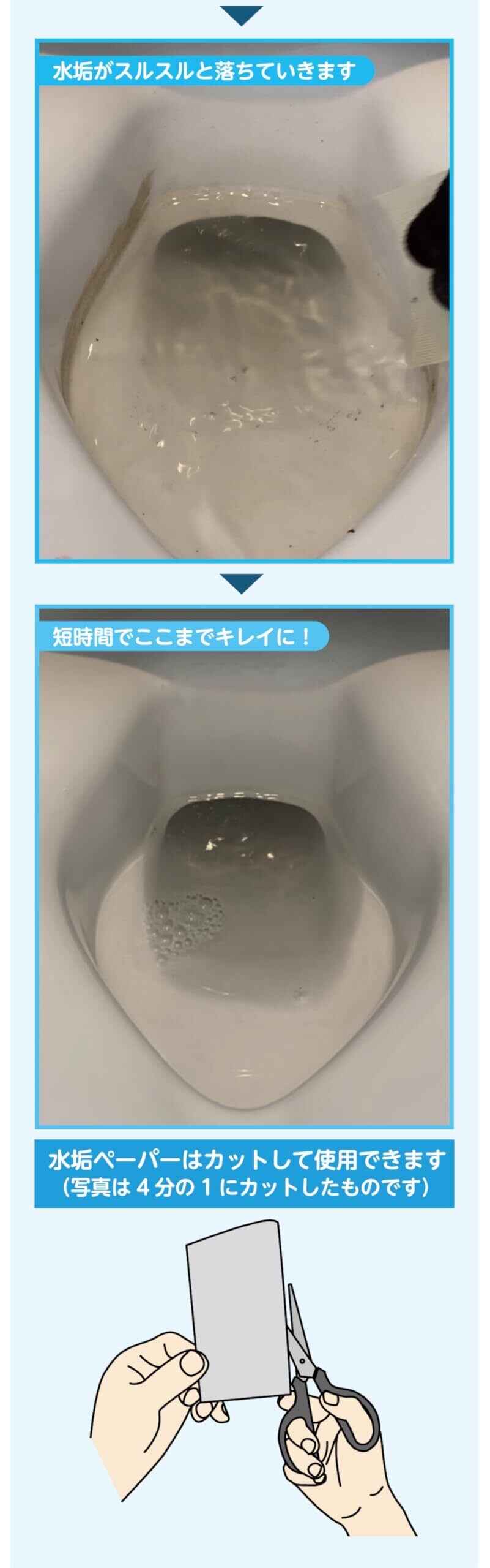 ■2枚入り■ペーパー:メッシュ表面にミクロの粉末ガラスがコーティングされている ■【便器・洗面台用】水をつけてこするだけ。陶器の「水垢・くすみ・黒ずみ」が落ちる