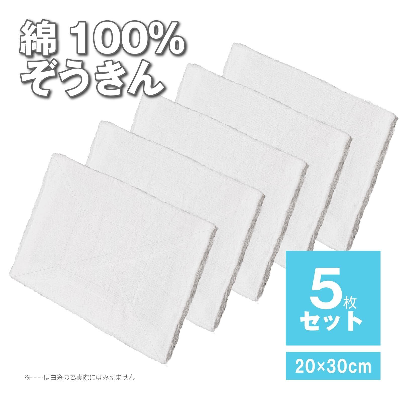 スクール ぞうきん 5枚 セット タオル生地 綿100% 学校用 ネームタグ・ひっかけ紐付き 吸水 ホワイト 雑巾 新学期準備 幼稚園 保育園 小学校