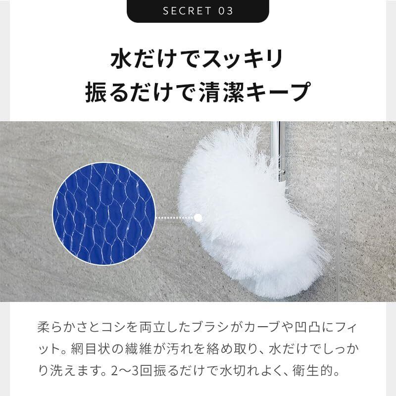 【水切れのいいブラシ】水切れが良く乾きが早いブラシです。おそうじの後に2,3回ブンブンと振れば、水気がなくなり衛生的です。