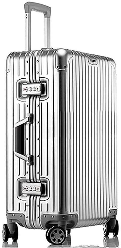 【全アルミニウム合金ボディ+アルミニウムフレーム】 このキャリーオンラゲージは、全アルミニウム合金ボディとアルミニウムフレームを備えており、洗練されたクールな外観を持っています。金属素材により強度と耐久性が確保され、長寿命を実現しています。金属のボディが高級感を演出し、優れた選択肢となります。有名ブランドの製品と比較すると、数倍もの価格差がありながら、丈夫で軽量であるという点で優れています。